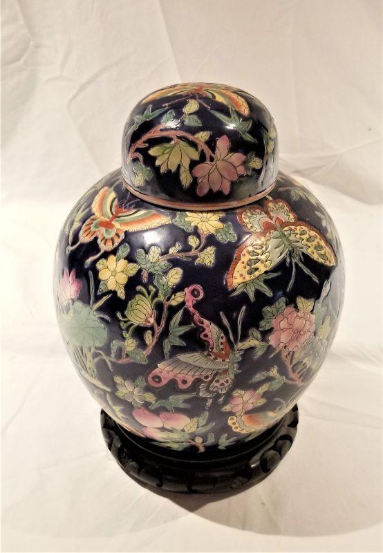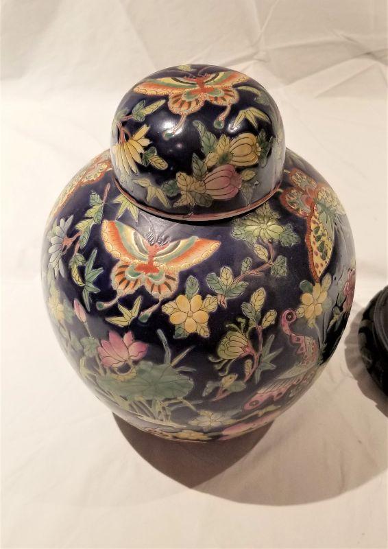 Late 19th century Chinese Ginger Jar. Good condition. Stands 9.5 " tall without the stand.