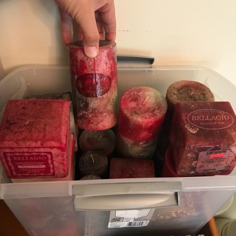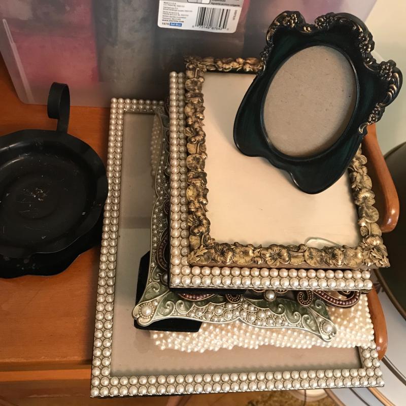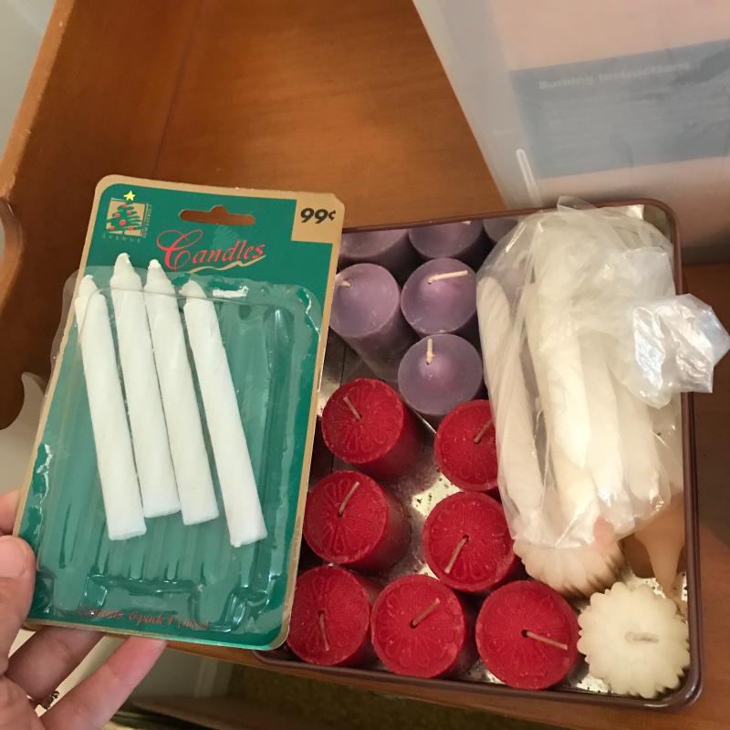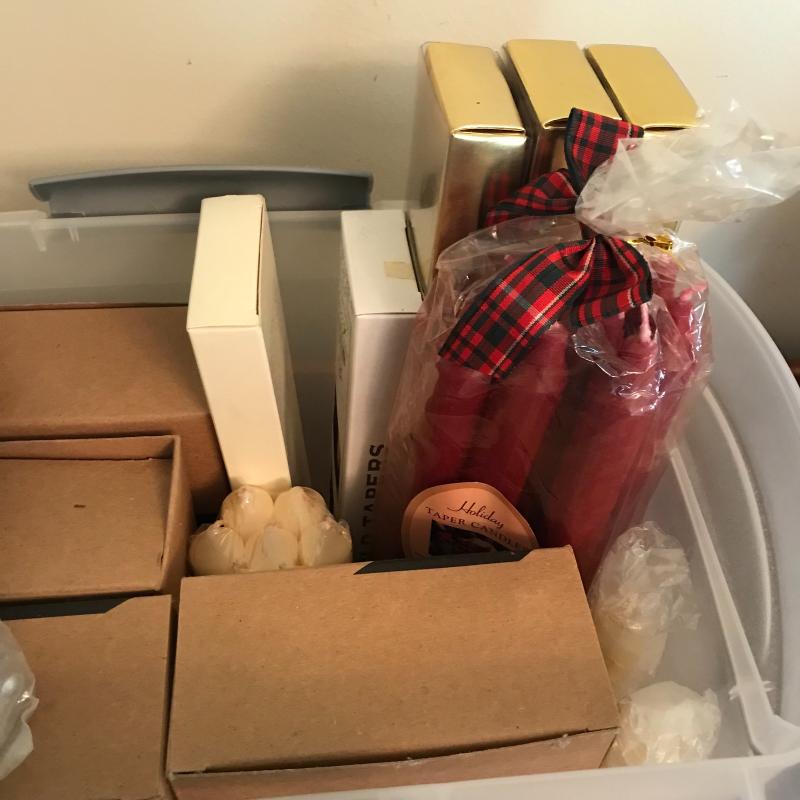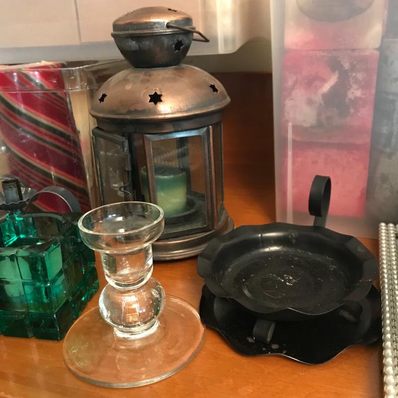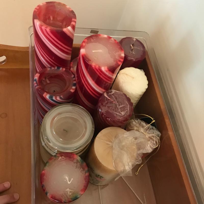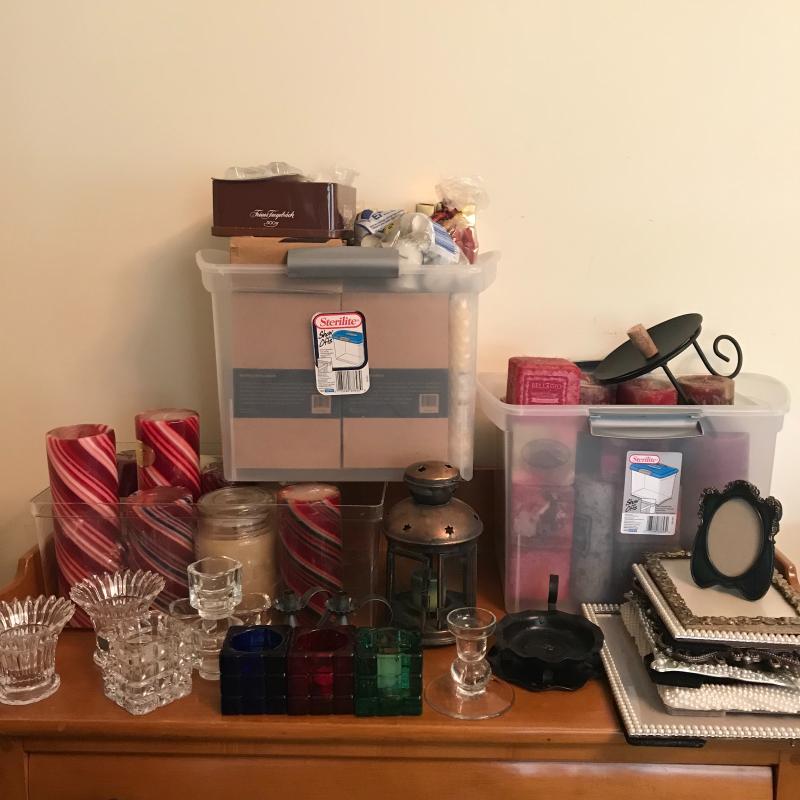 Huge lot of candles of all sizes, mostly unlit. Accompanied by some delicately styled frames, largest is 8”x10” and candle holders. Local pick up only.