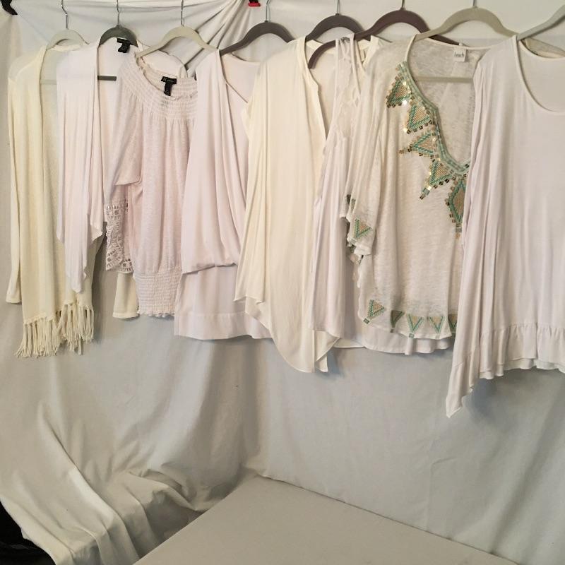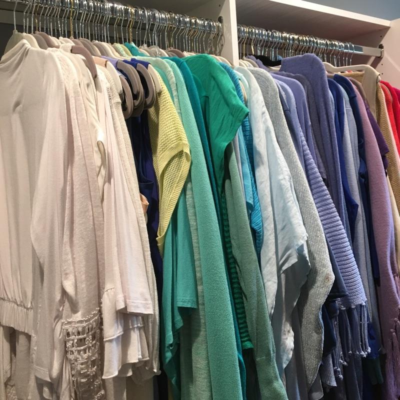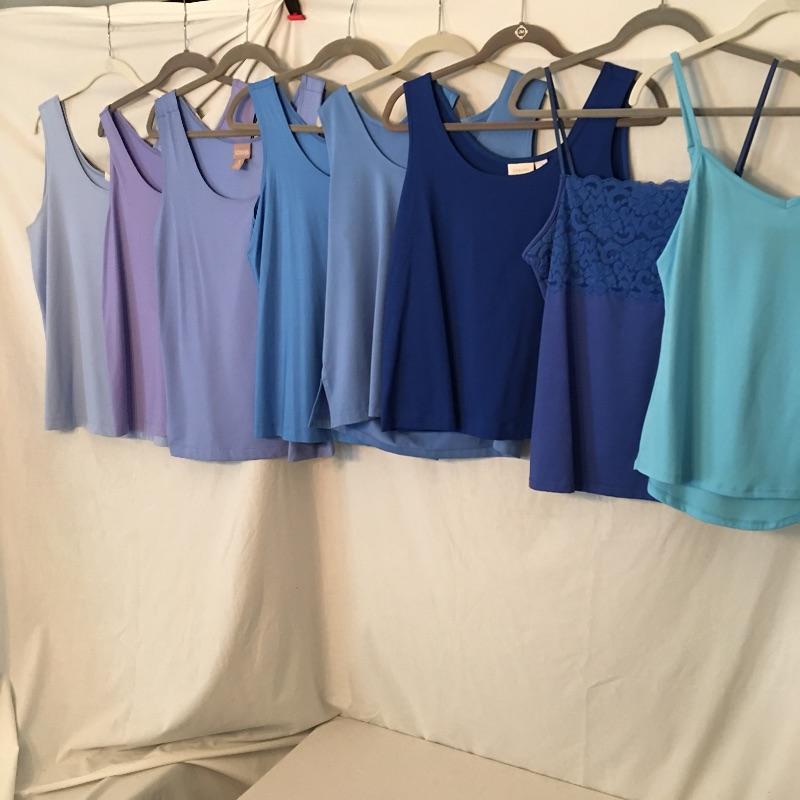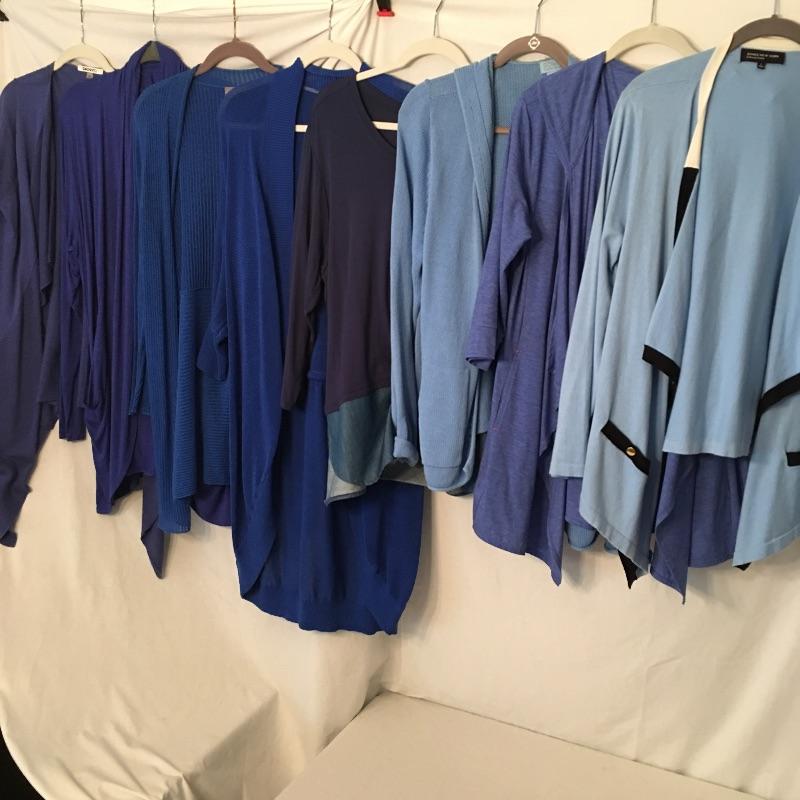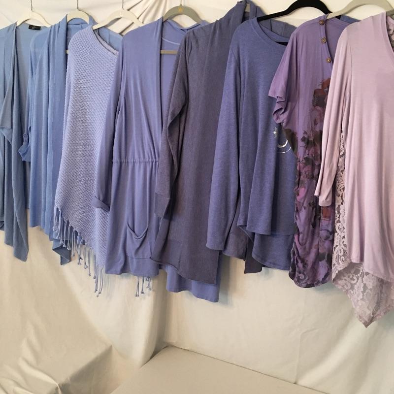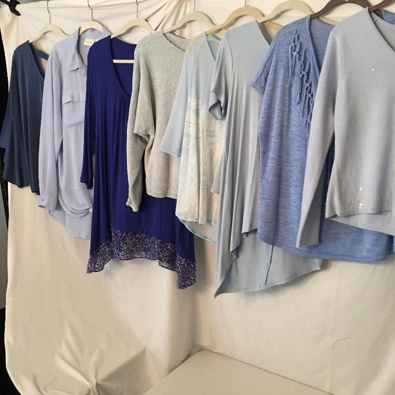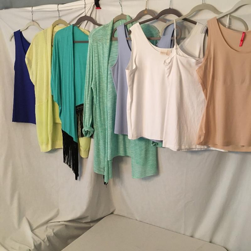 Ladies Colorful tops includes over one hundred tops in a rainbow of colors, styles and materials. Including such brands as Chico, Halston, Cha Cha Vente, Kate and Mallory, Cuddl Duds, Cupio and more. Sizes run from Chico's size one to XL.