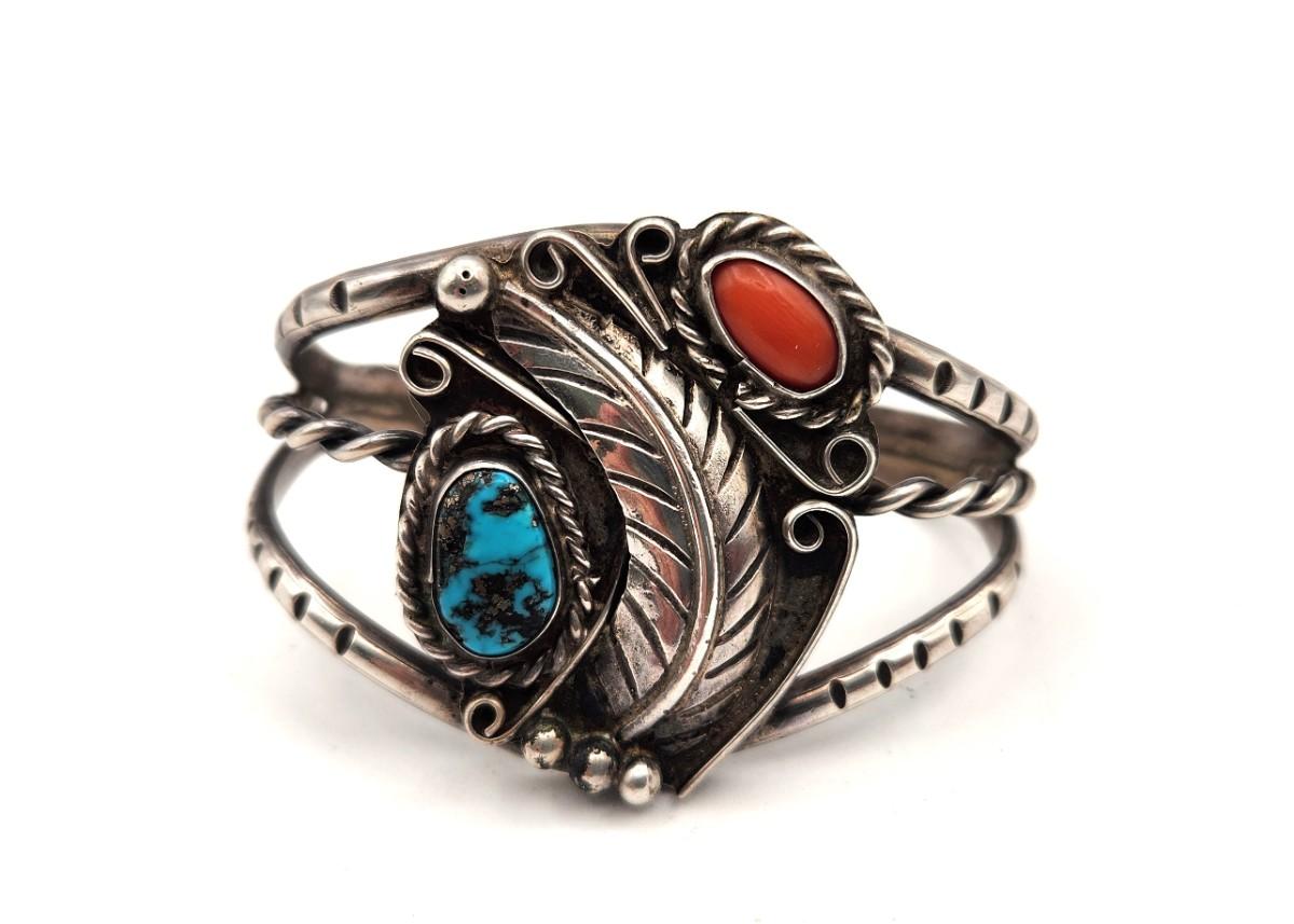 Lot #129 Lovely Sterling Turquoise Carnelian Bracelet - Southwest Style
