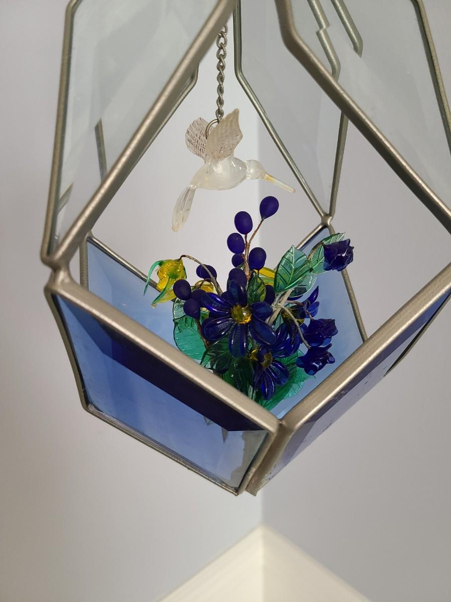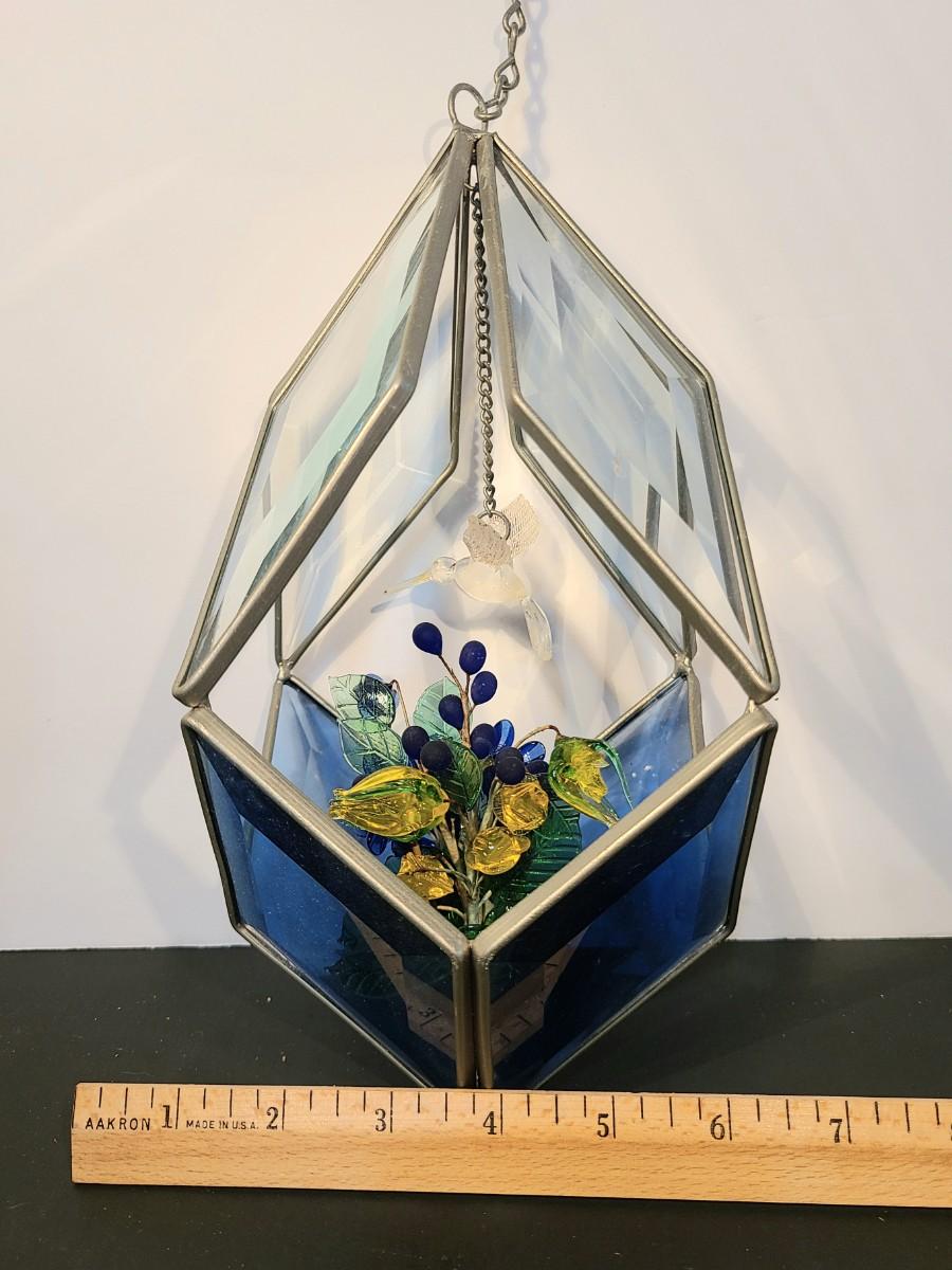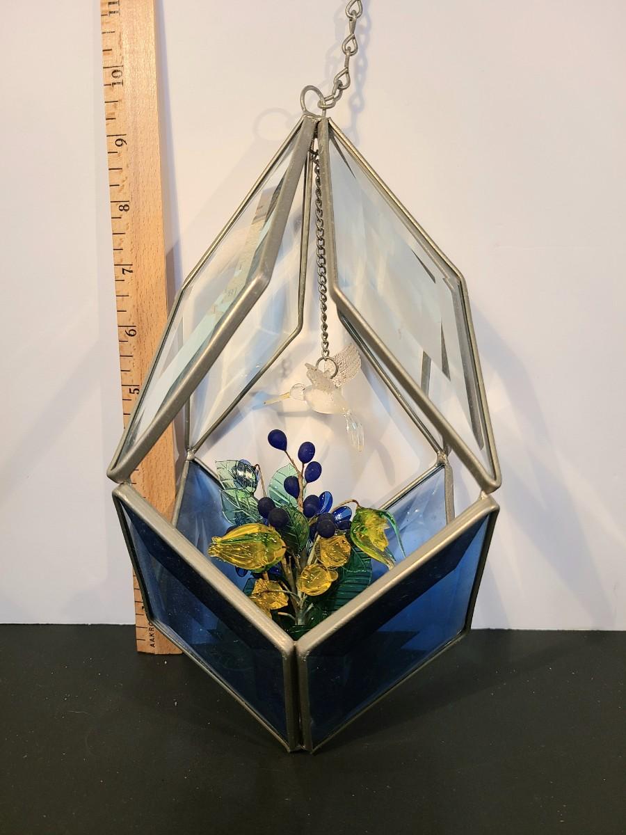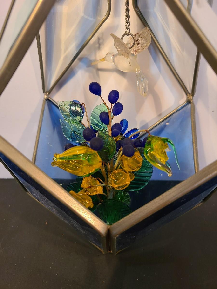 Lot 130: MCM Vintage Stained Glass Hanging Terranium w/Glass Flowers