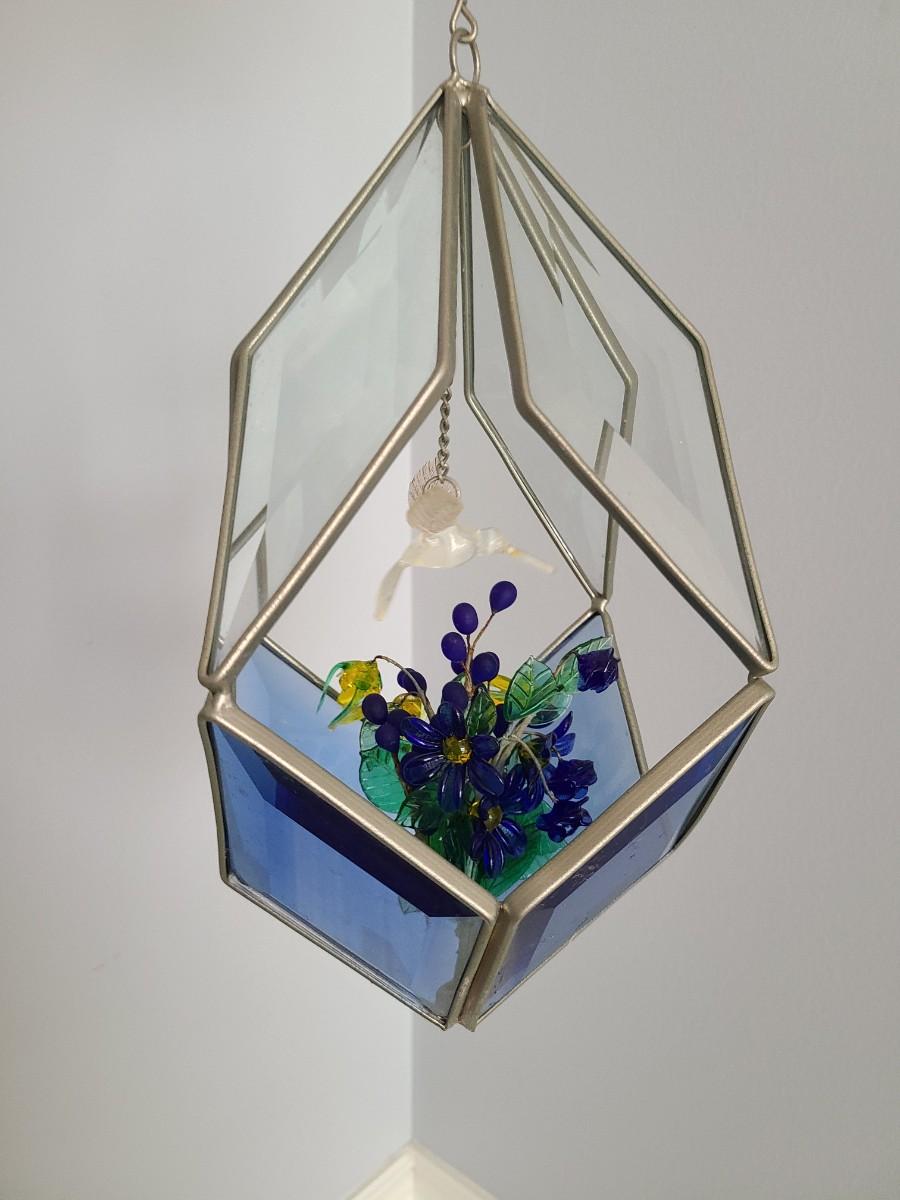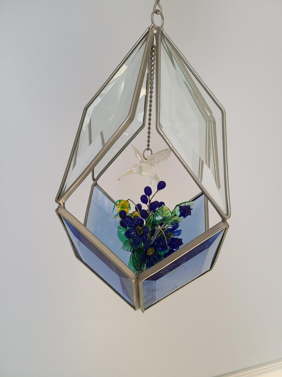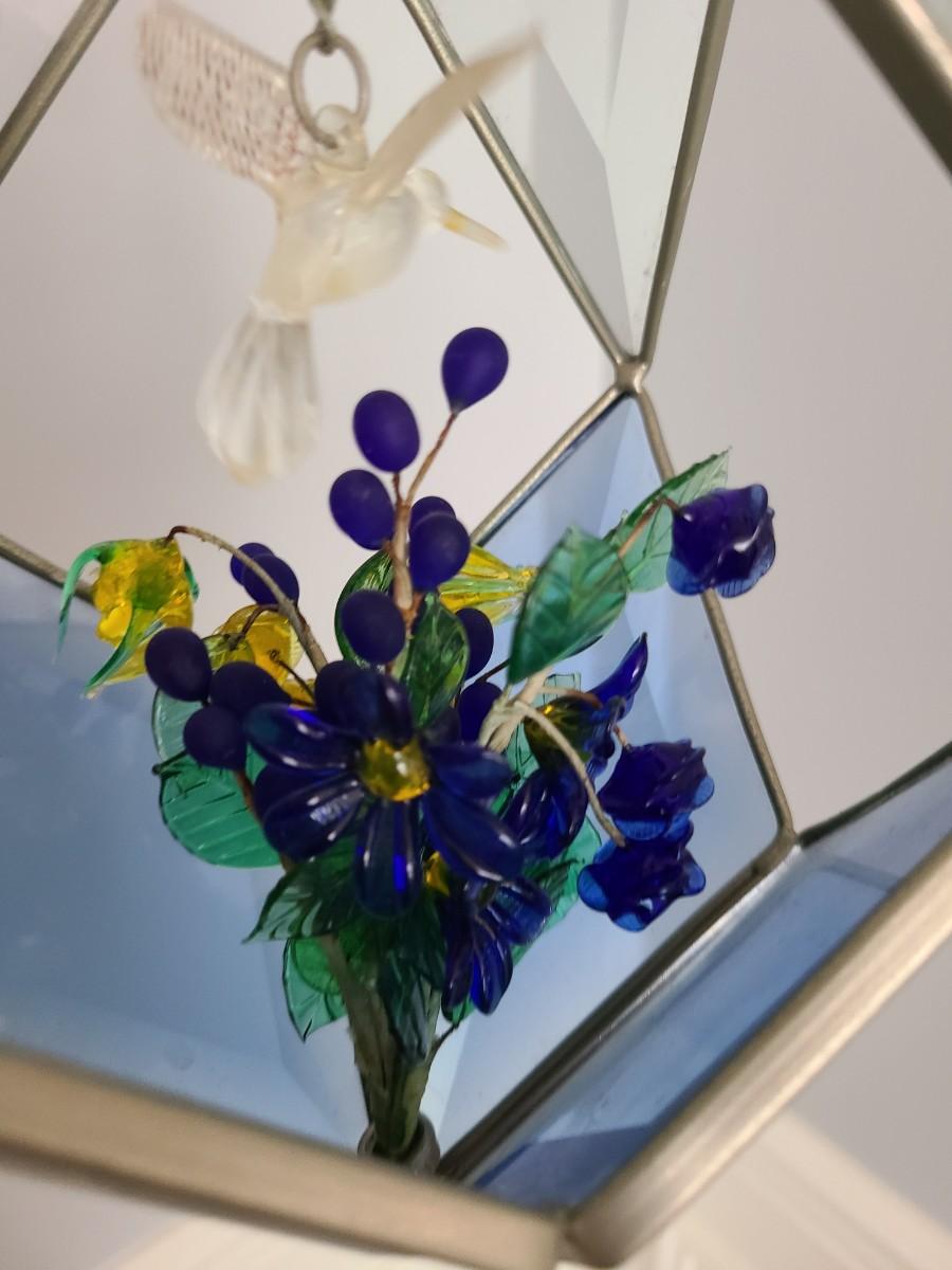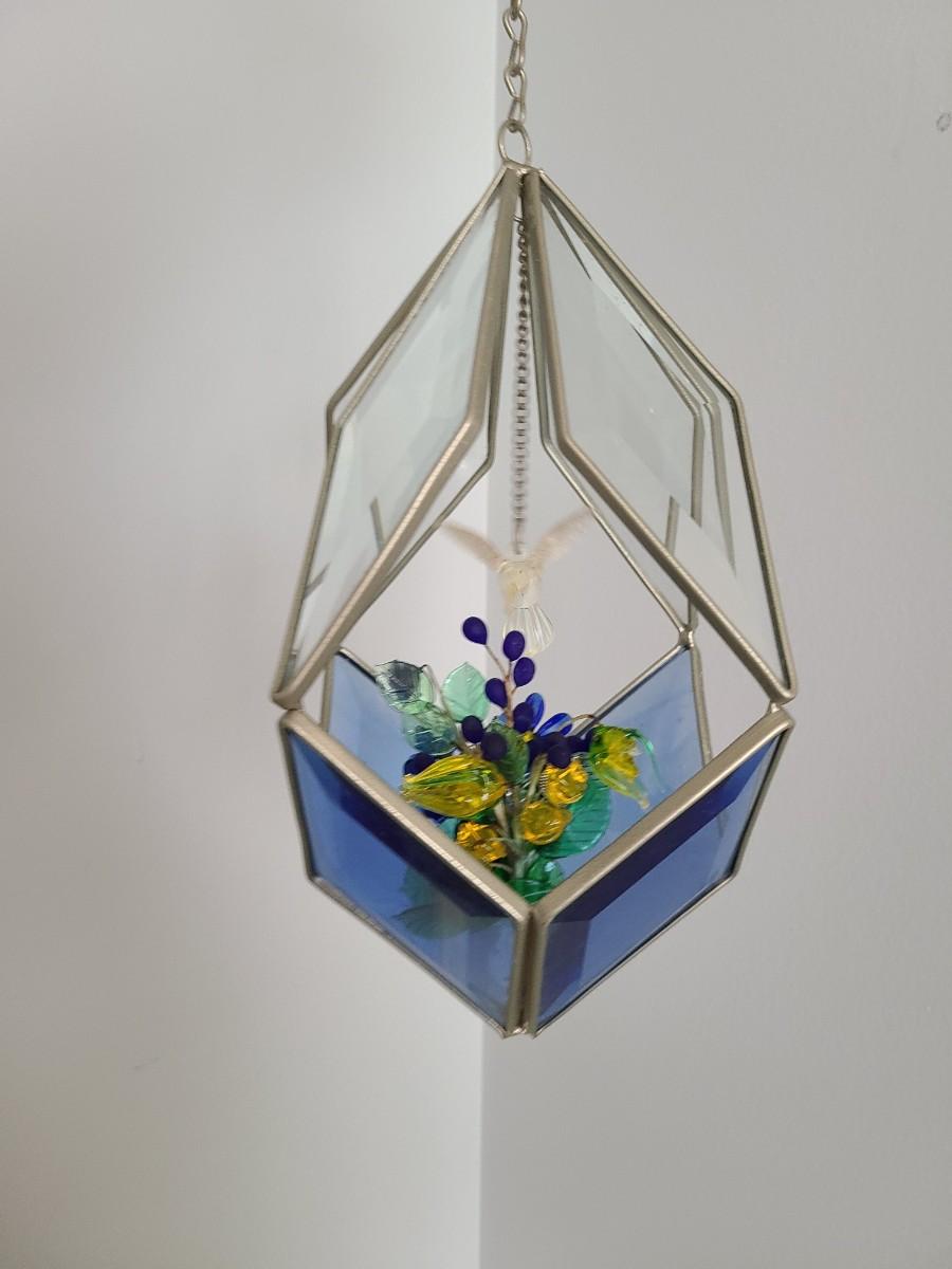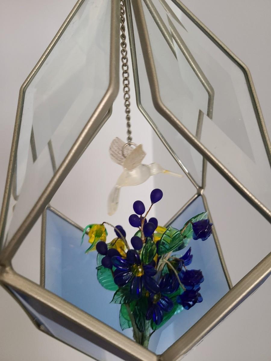 Lot 130: MCM Vintage Stained Glass Hanging Terranium w/Glass Flowers