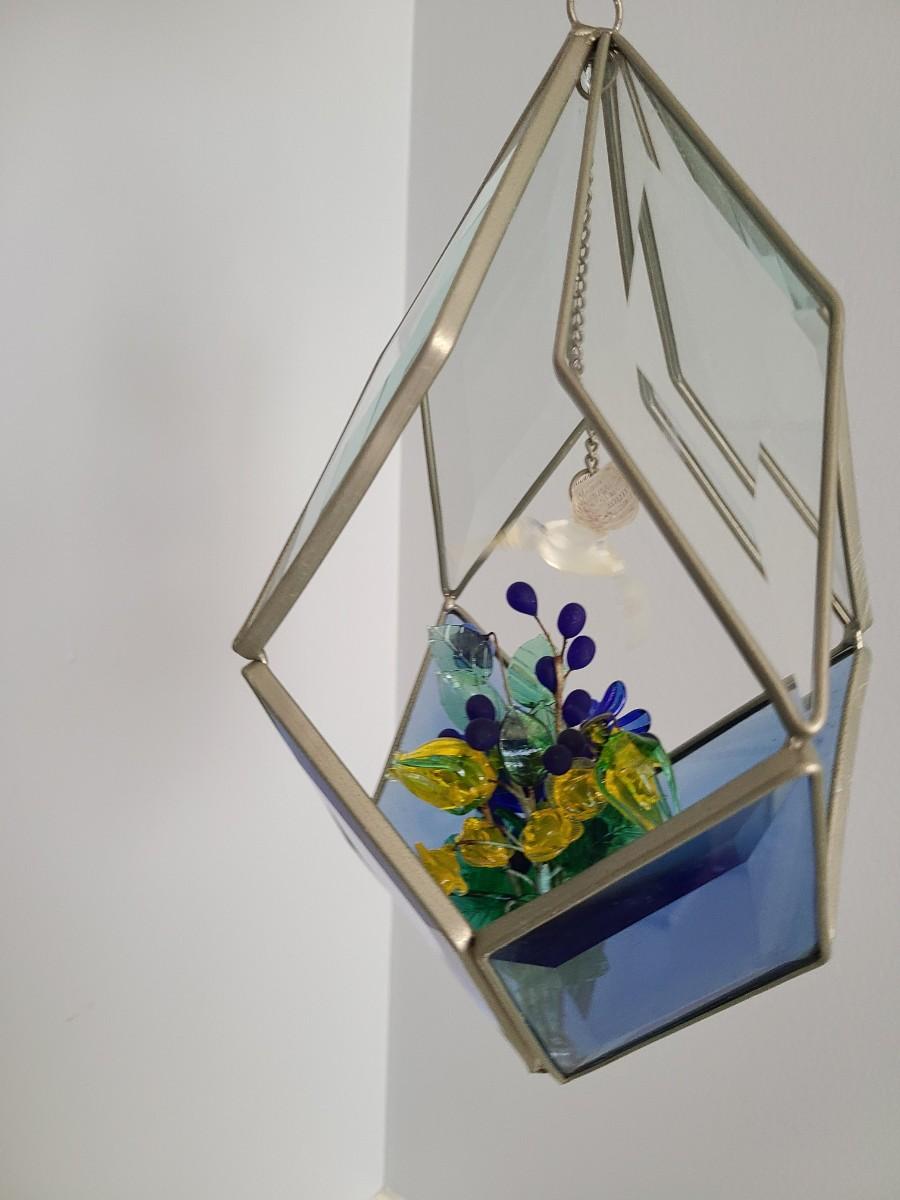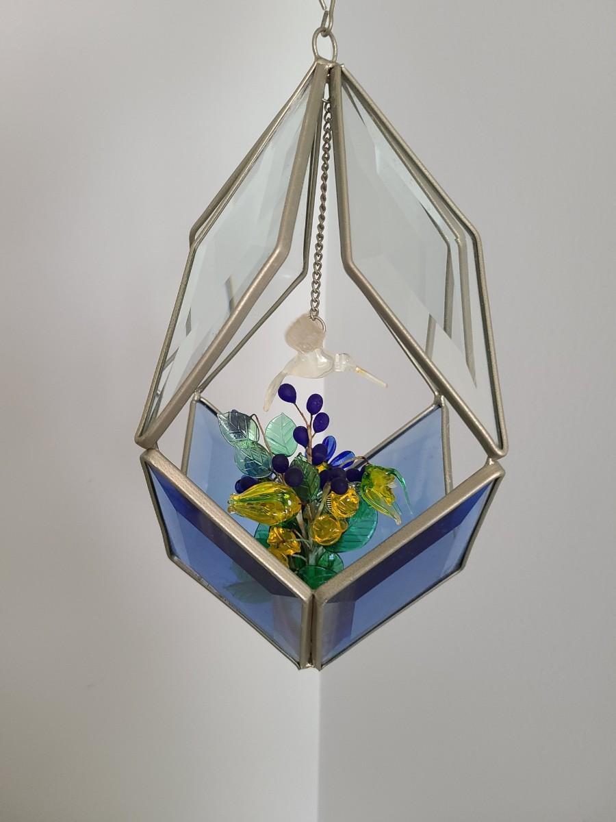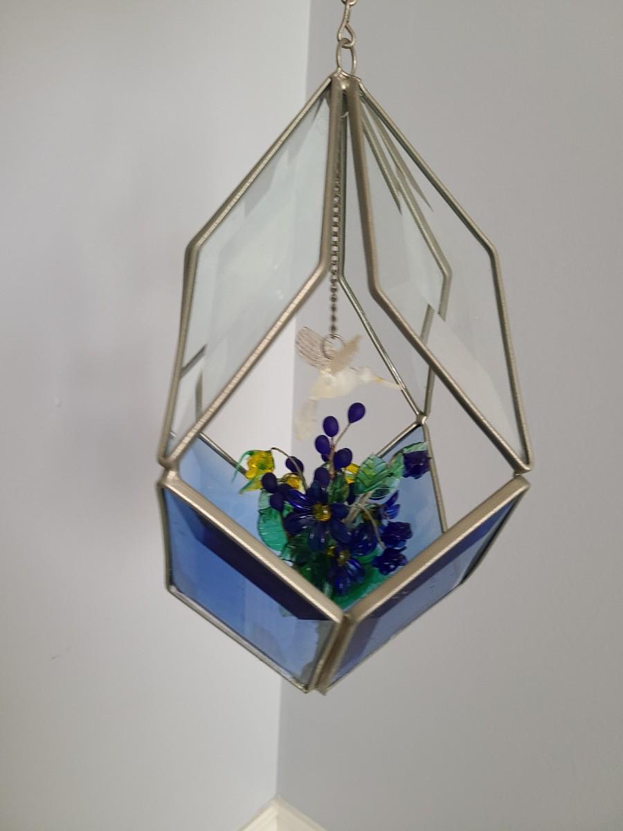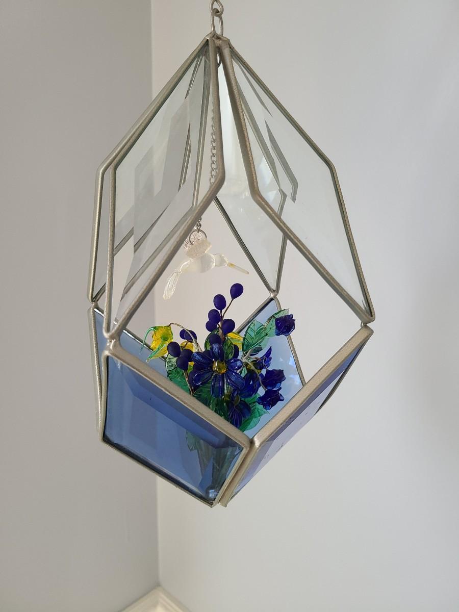 Lot 130: MCM Vintage Stained Glass Hanging Terranium w/Glass Flowers