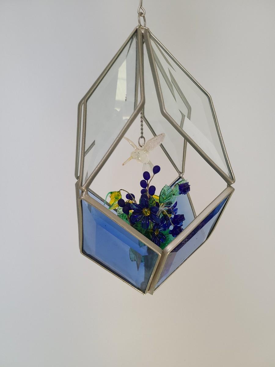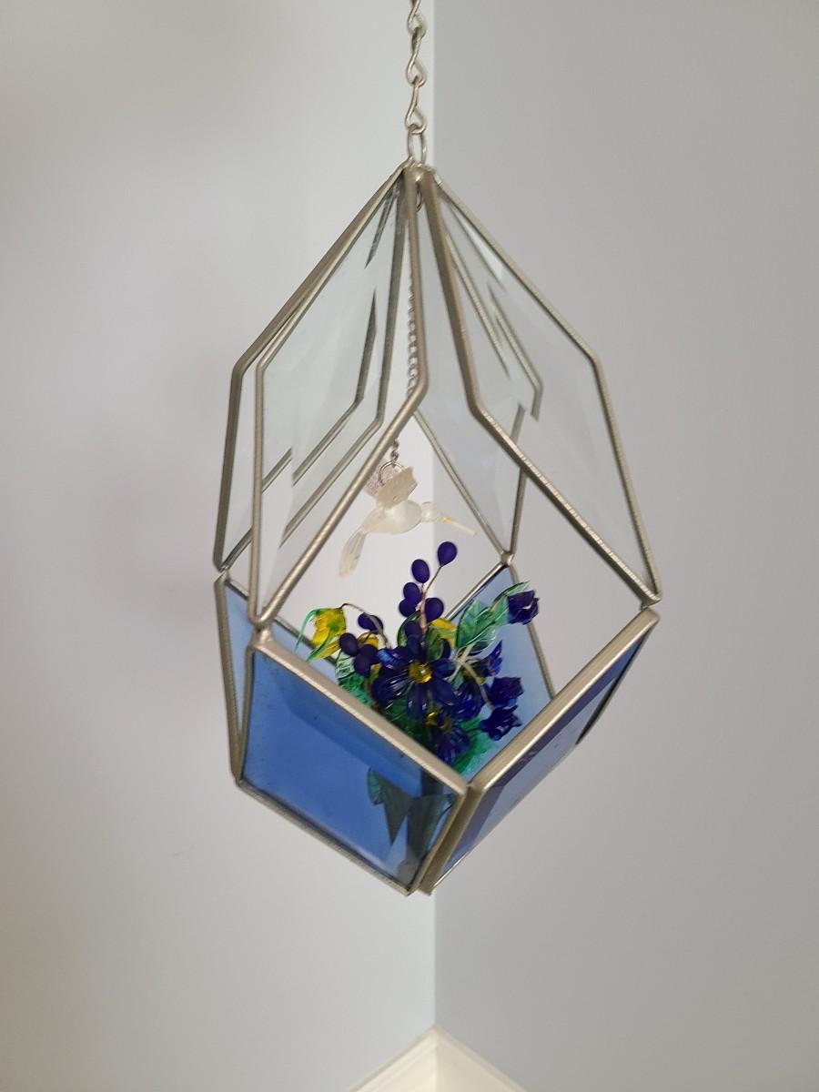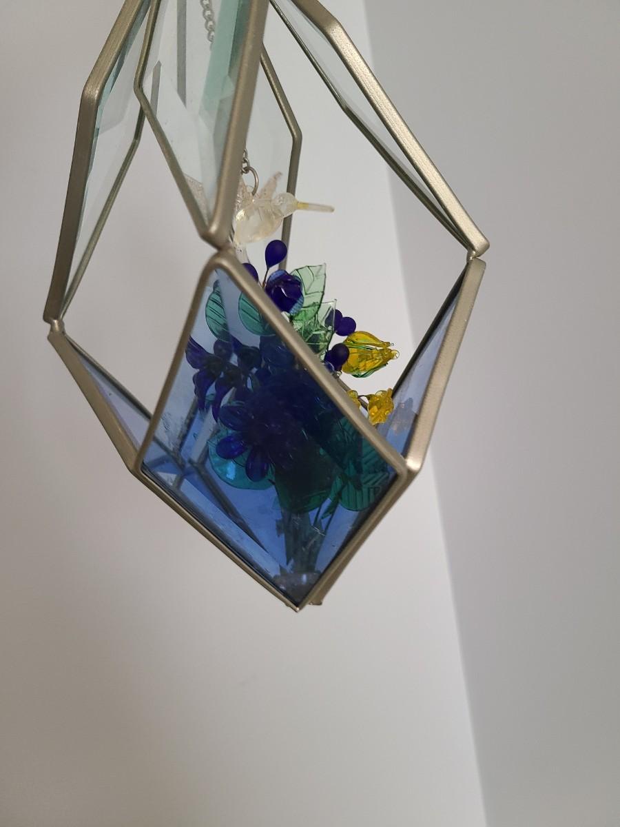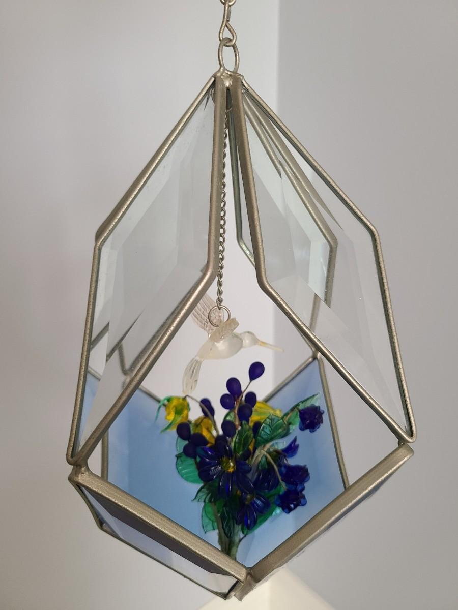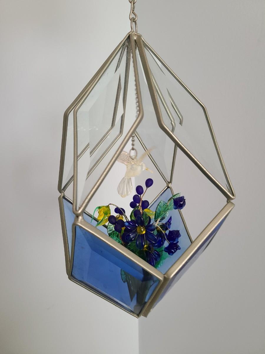 Lot 130: MCM Vintage Stained Glass Hanging Terranium w/Glass Flowers