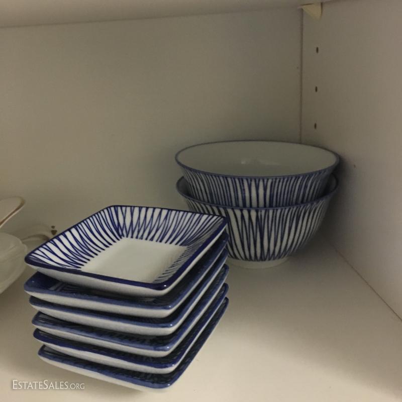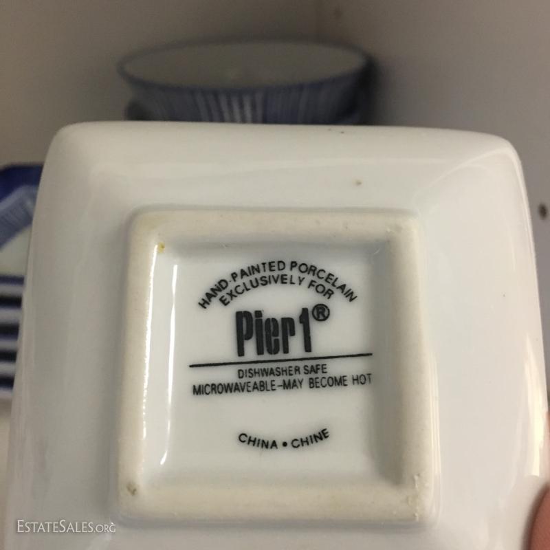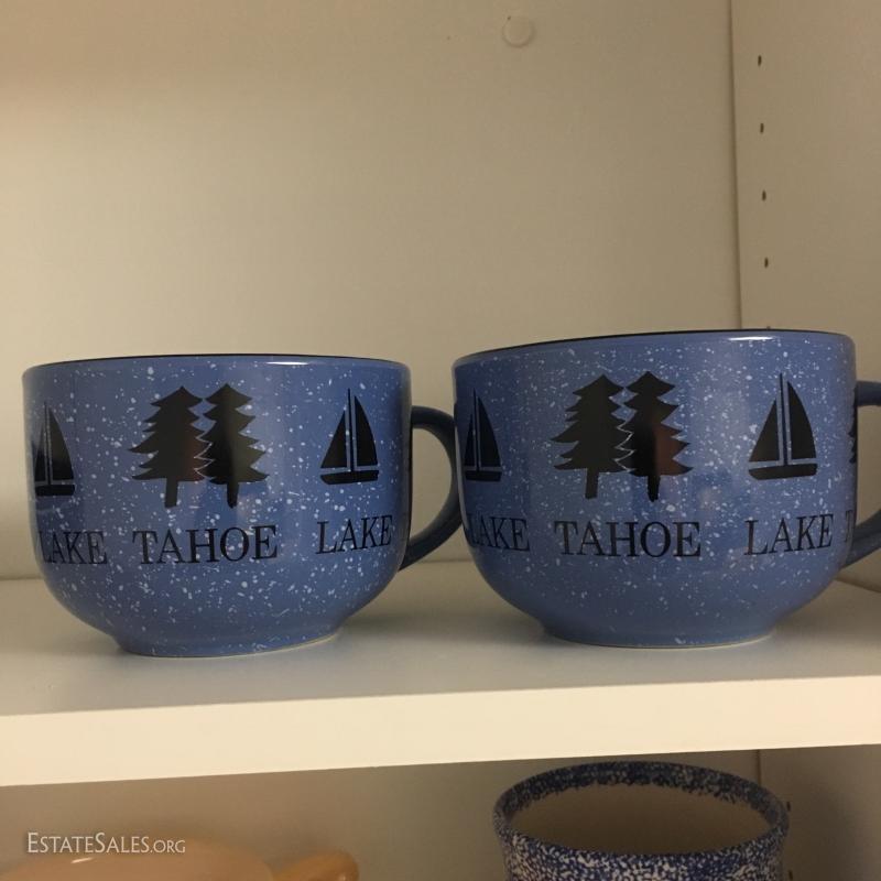 Large lot of misc kitchen dishes: coasters, luster ware, blue wine cooler, Pier 1 soy and small dishes, coffee mugs from Lake Tahoe, and much,much more. See photos for details