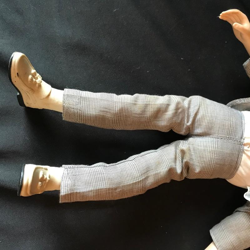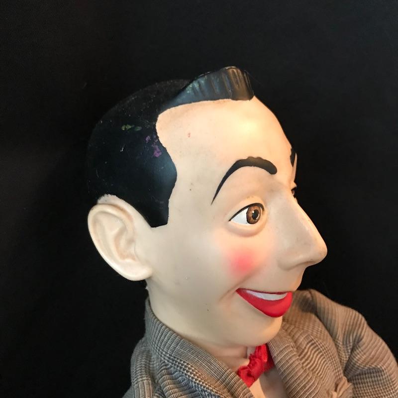 PeeWee Herman doll by Matchbox Toys is here to bring you back to 1987. PeeWee stands 17” tall and has pose-able wired legs and right arm. His left arm’s wire has separated from the shoulder, but the cloth is intact and it’s not noticeable by sight. At one point in time, this PeeWee could talk. Now he’s missing his string, but otherwise he’s in nice shape. See photos. Shipping available.