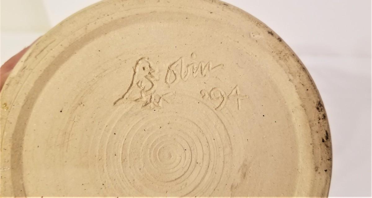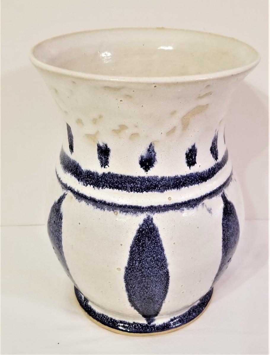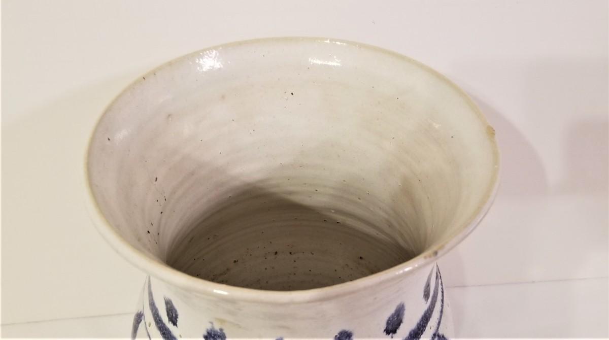 Attractive Studio Pottery blue/white vase - signed "Robin '84" - 9.5" tall, 6.75" across at the top.