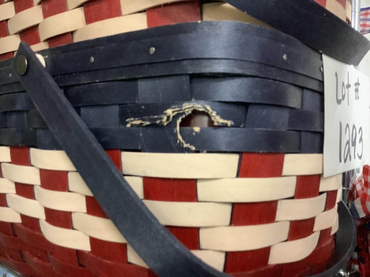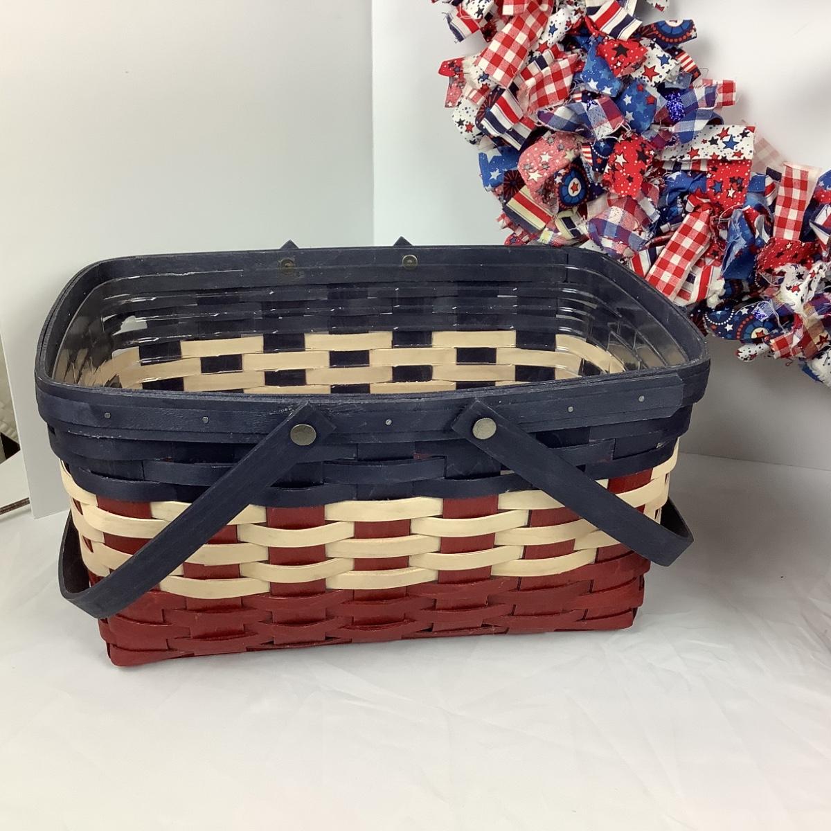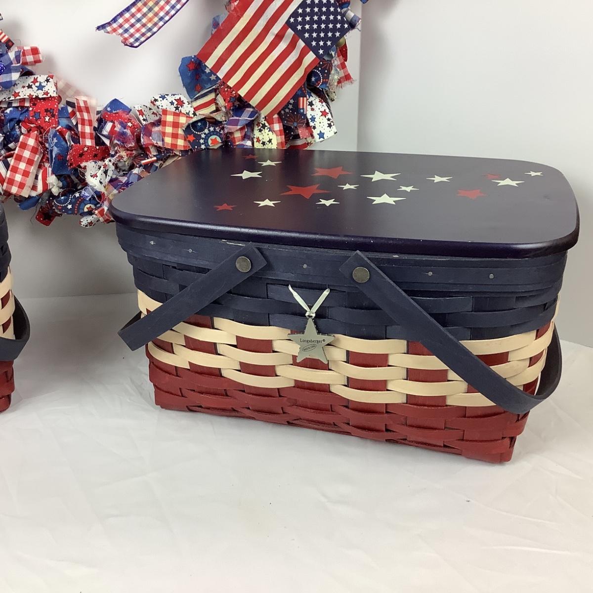 Lot # 1293 Pair of Longaberger 2011 Americana Medium Market Baskets, One Lid & Red, White & Blue Wreath