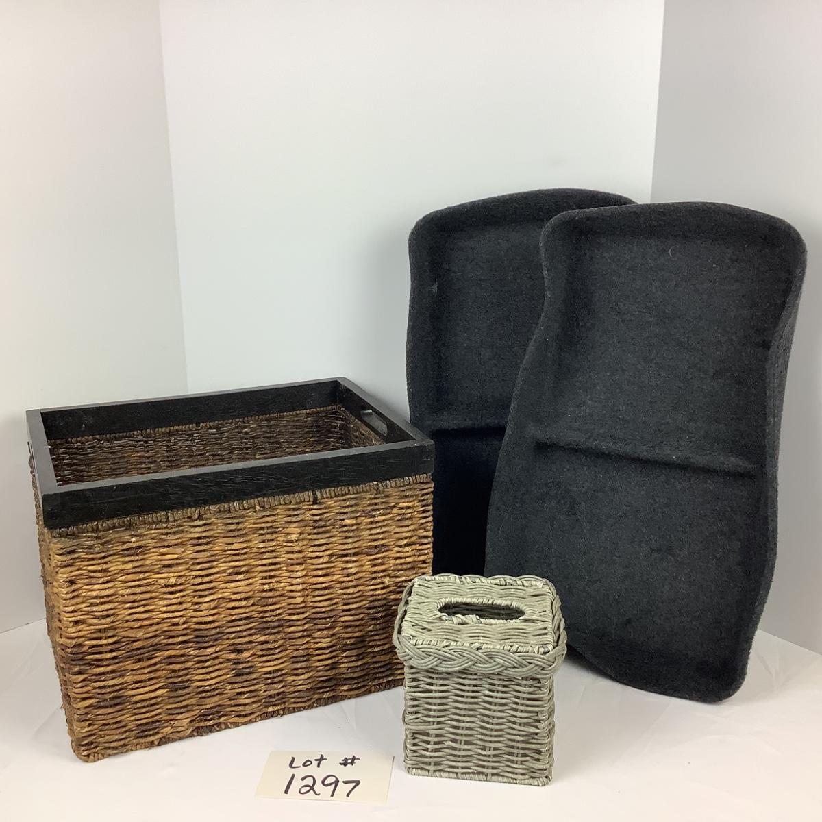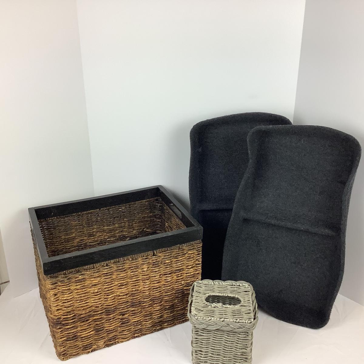 Lot # 1297 Pair of IKEA Felt Drawer Dividers, Wicker Tissue Box Cover, Wicker Storage Basket with Handles