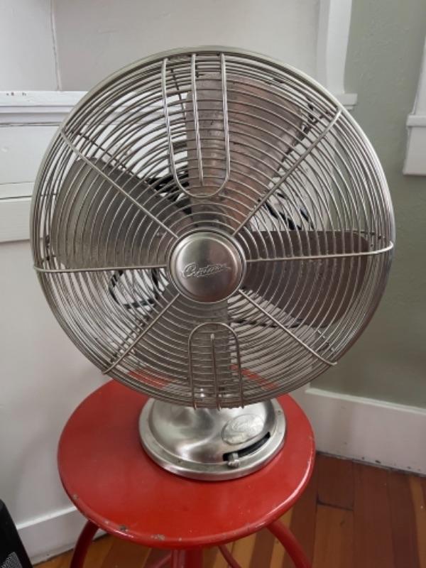 Lot 129OF. Heater, fan, wastebasket, metal stool, map of USA--$52.25