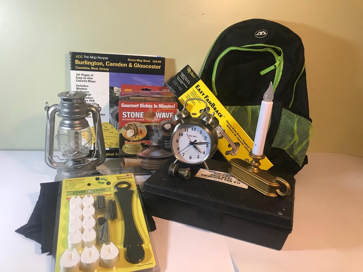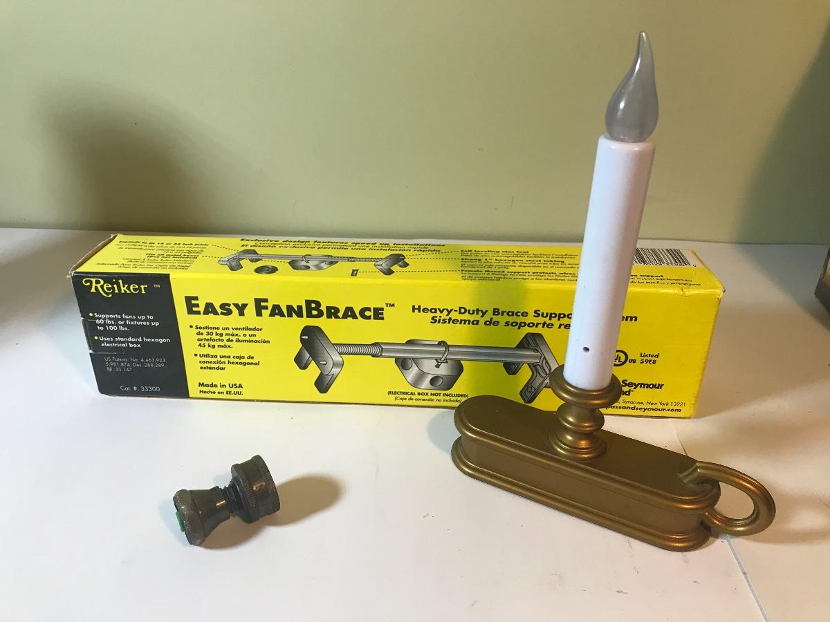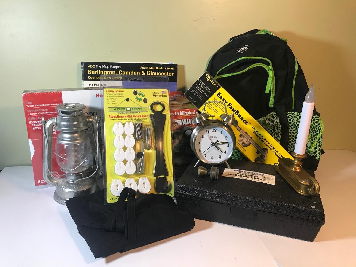 Blue Point soldering gun kit, picture hanging kit, Big Ben alarm clock, battery operated lantern and candle, hanging fan brace, and more. Please see all pictures for content of the lot, condition of the lot, and measurements if taken. Pictures are the best representation of the items listed and items are untested unless indicated in description. Thank you for looking and have fun bidding!