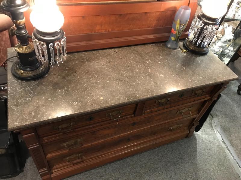 Lot 12-Beautiful Antique Victorian Mahogany Eastlake Style Marble Top Dresser