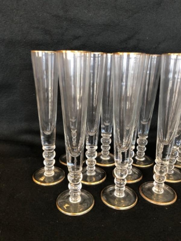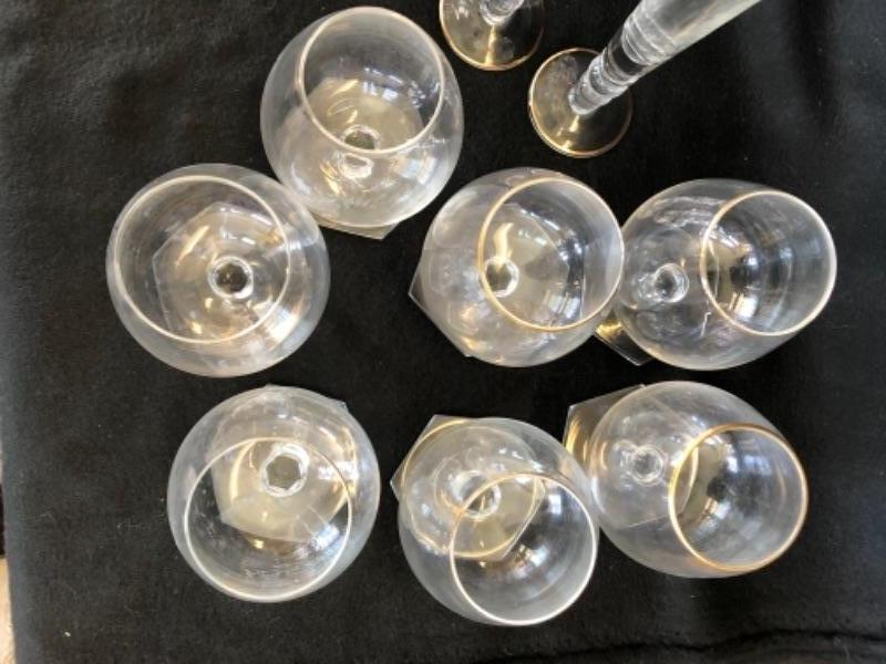 Lot 12P. Stemware: Venetian Murano Glass with gold rims, 7 brandy, 11 champagne “” $97.50