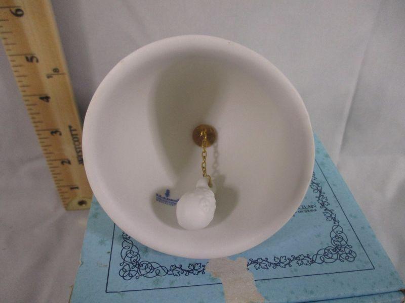 This bell is in excellent condition with the only issue being that it is missing the ribbon that matches the base color. It is about 3" tall and comes with the box, but there is nothing else (no COA for example).