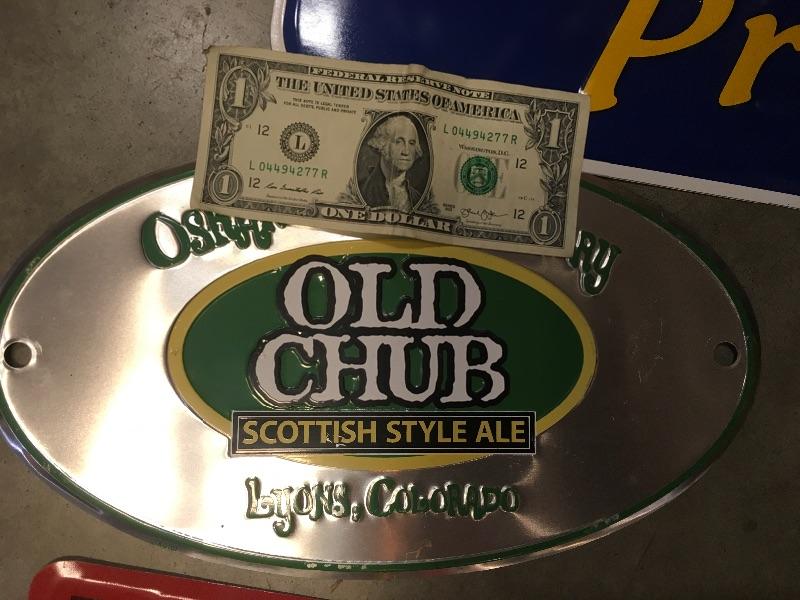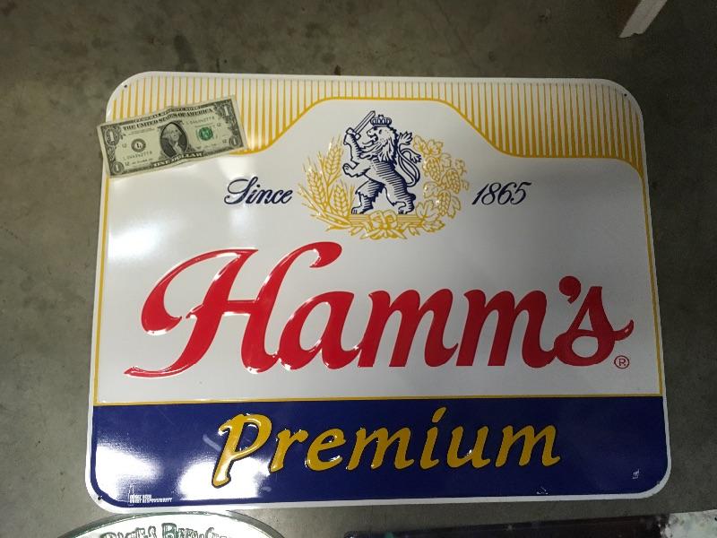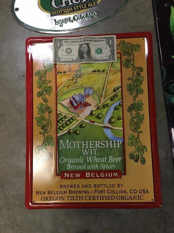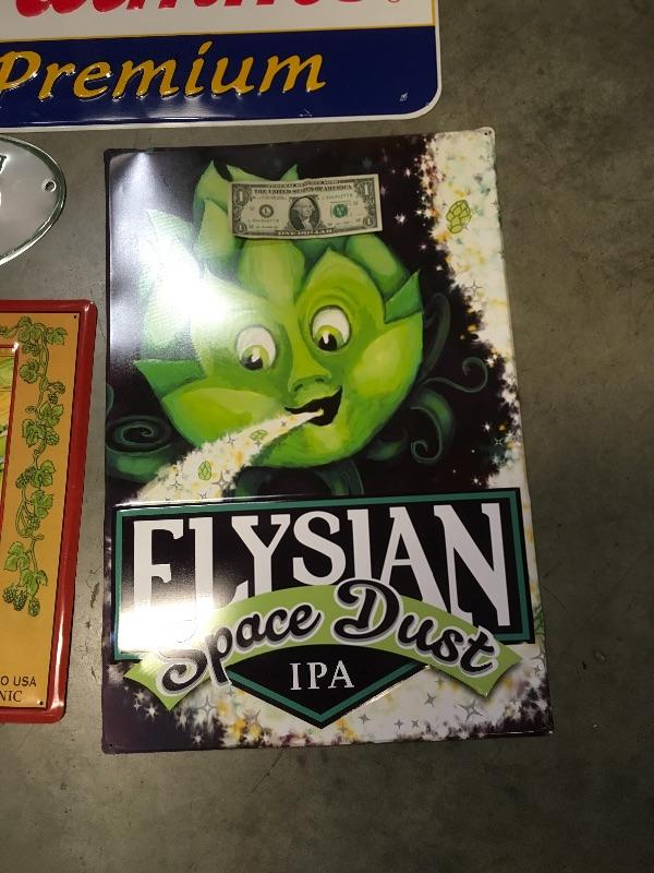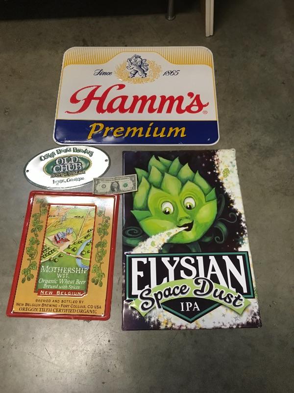 Lot 13 The 4 signs are Elysian, Hamm's, Mothership, and Old chub