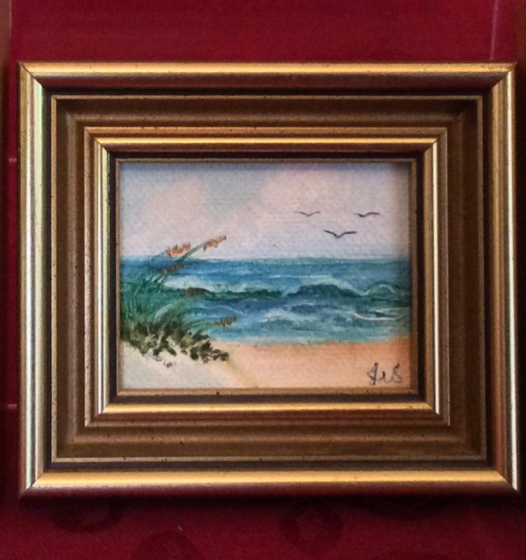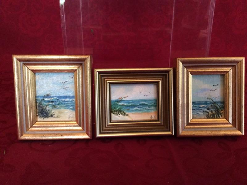 Miniature Acrylic of seashore by Jane Ryan Sebern from Brownsville, Texas. Sebern died in 2010. Very sweet little trio.