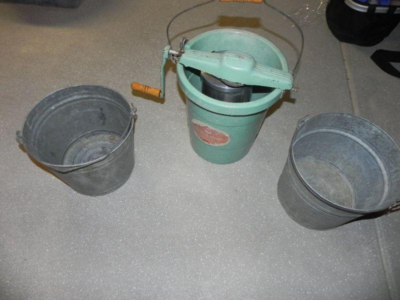 LOT 13  VINTAGE ICE CREAM MAKER & GALVANIZED BUCKETS