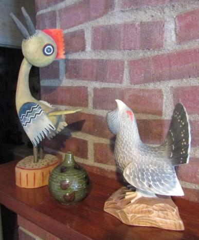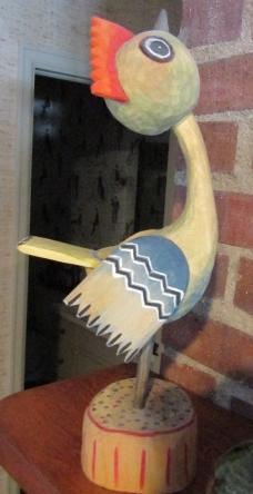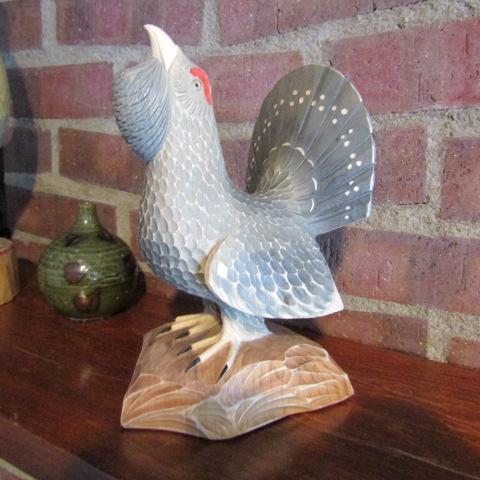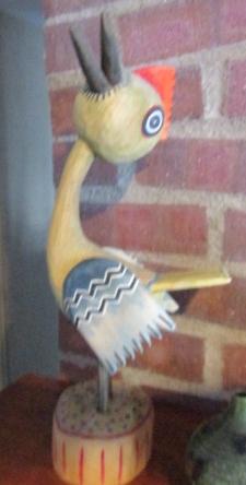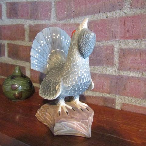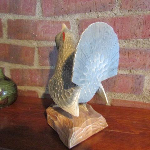 HAND CARVED AND PAINTED WOODEN BIRD 16" TALL AND A TURKEY