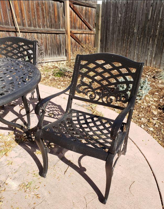 Lot 13: Patio Set (Table, Chairs, Umbrella and Matching Cushions