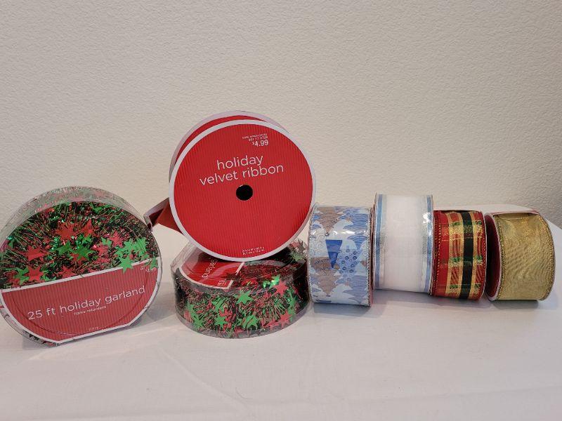 Lot 13: Assortment of Christmas Garland and Ribbon NEW