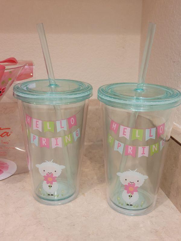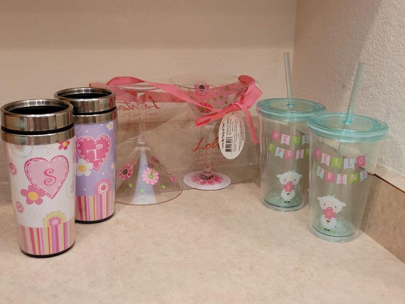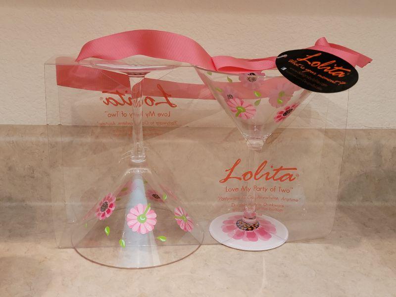 Lot 13: All NEW Lolita Martini Glasses, (2) Coffee Travel Cups & (2) Tumblers with Lids and Straws