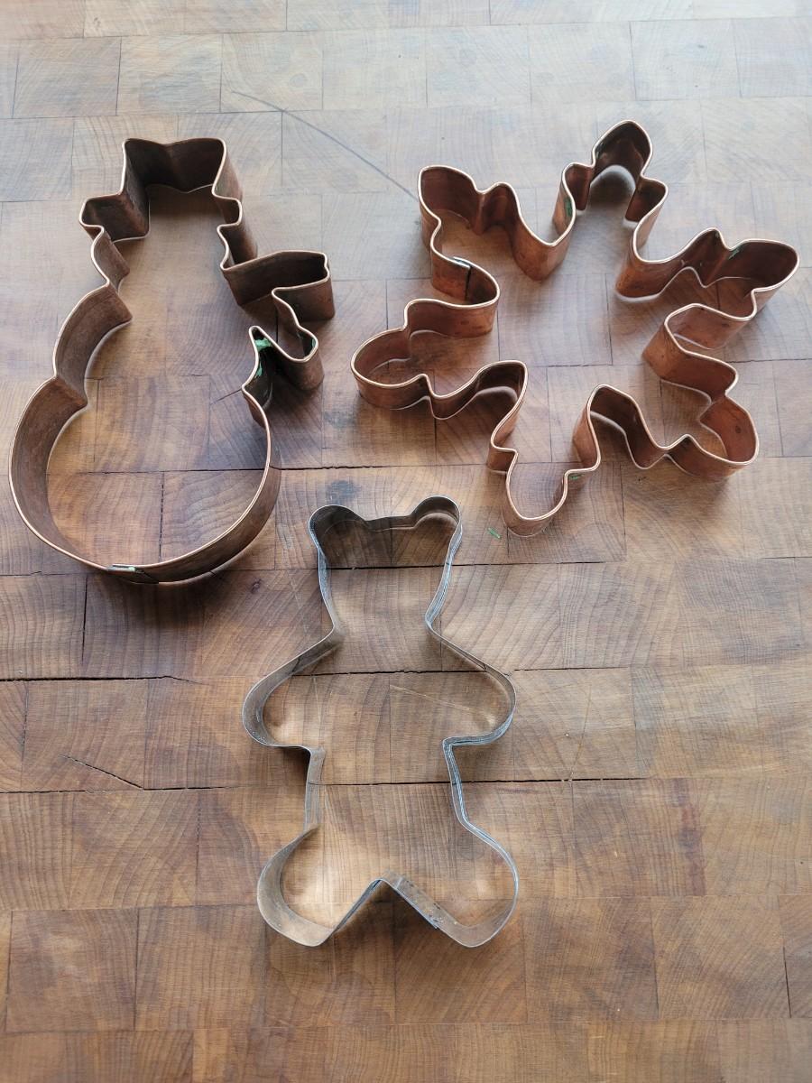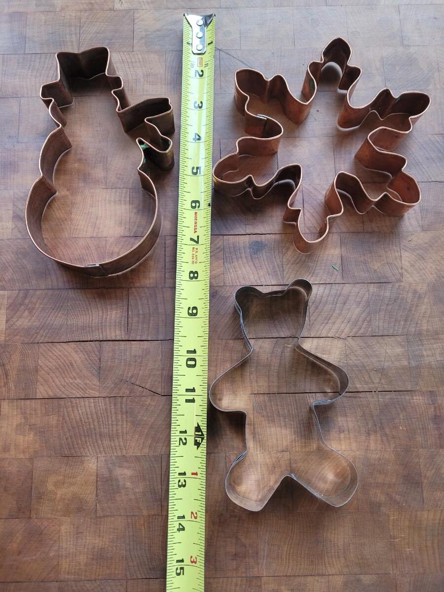 Lot 13: Copper Snowman & Snowflake Cookie Cutters and Bear Cookie Cutter