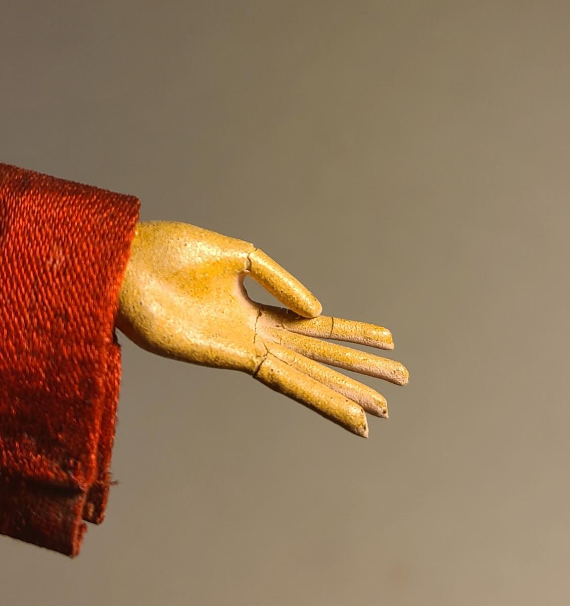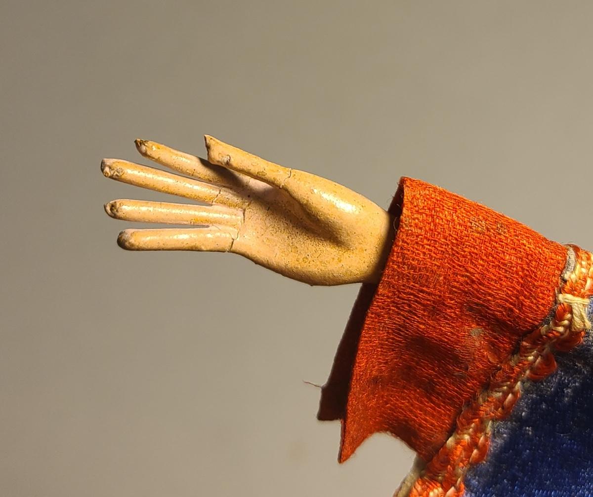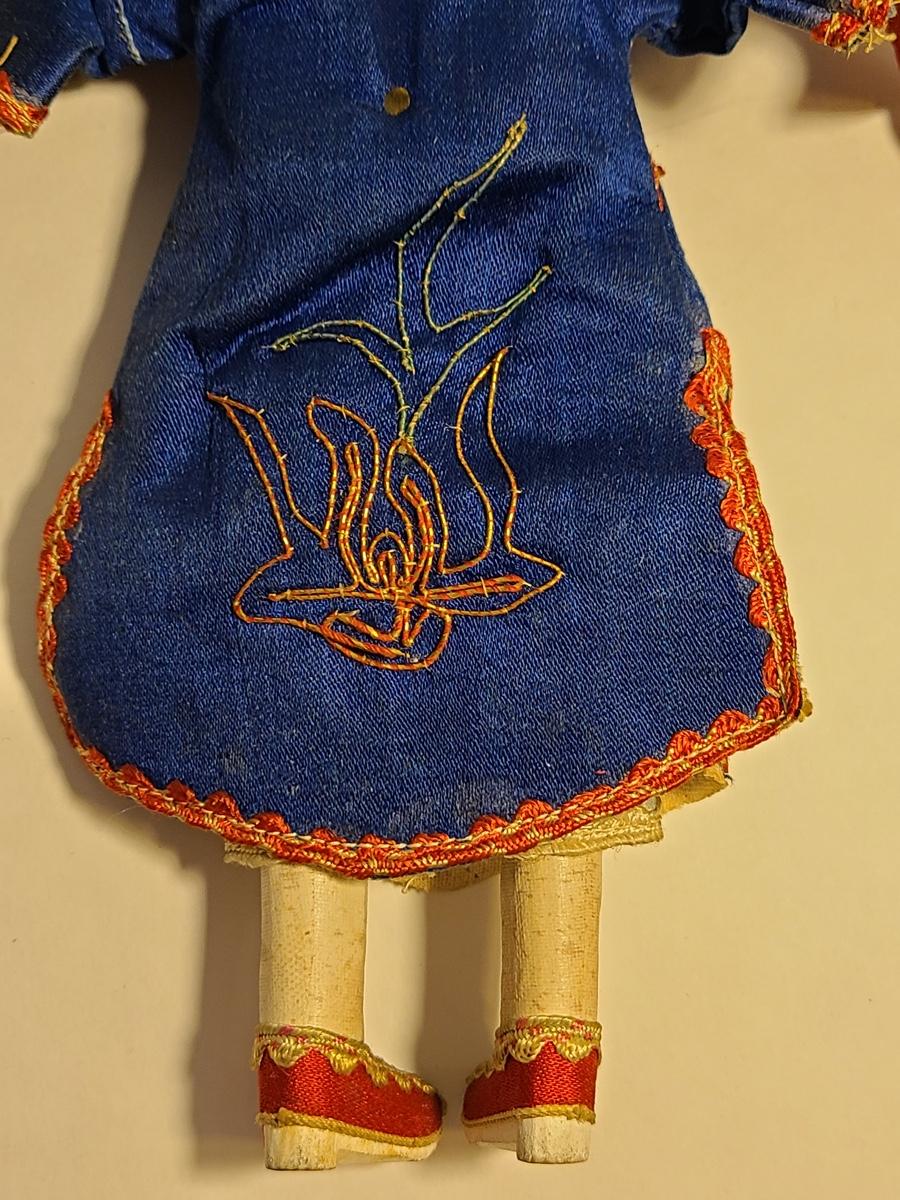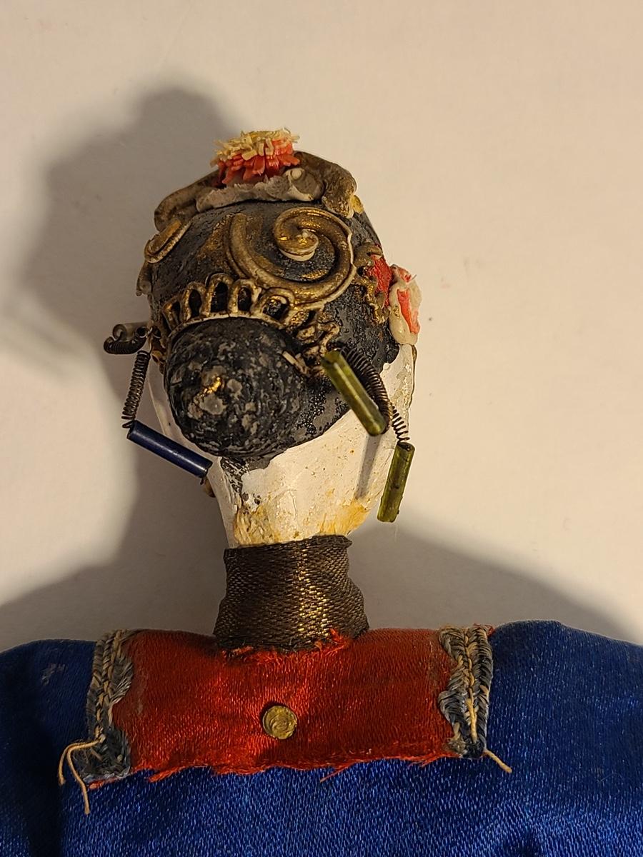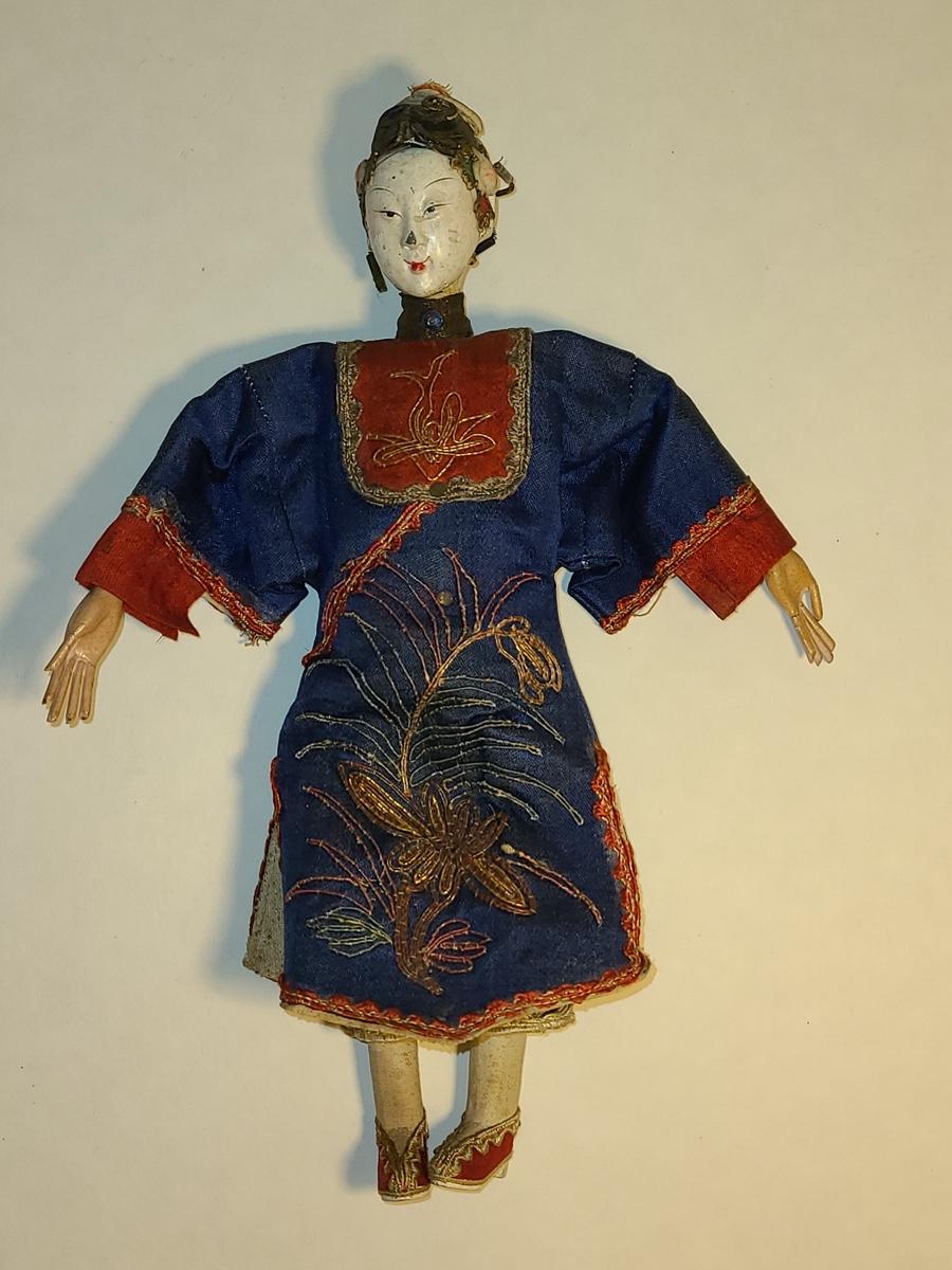 During its height of popularity in the Qing Dynasty, when one went to the opera, souvenir dolls were often purchased. This doll is most likely over 100 years old. Her face is wood and hand painted with beaded detailing through hair. She has elongated fingers that look to be wood with a wood frame, her arms feel unattached in the interior if her robe, but unsure because we did not remove clothes to keep integrity of her silk embroidered robes. Amazing piece to add to a collection! Please see all pictures as they are the best representation of the items. The pictures show condition, measurements if taken, and what is included in the lot. Due to the large amount that we photograph and the time frame, we are not always able to take measurements. All items unless noted, are pre-owned and have been used. If you purchased furniture, you must bring help. We do not allow one person to carry large furniture out on their own. Bring help, tools and a truck for the safety of our client’s homes, and your personal safety. Company policy. Thank you.