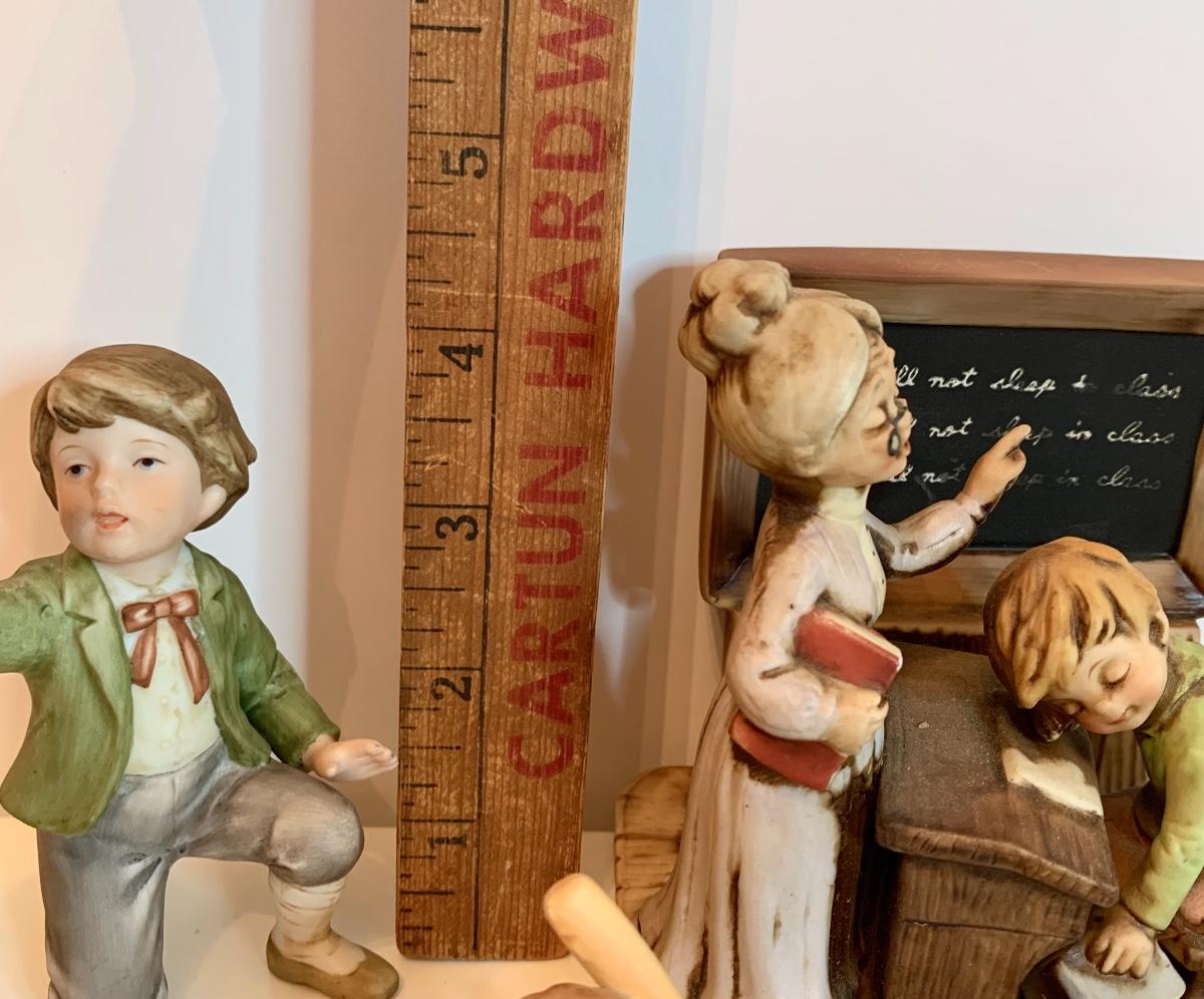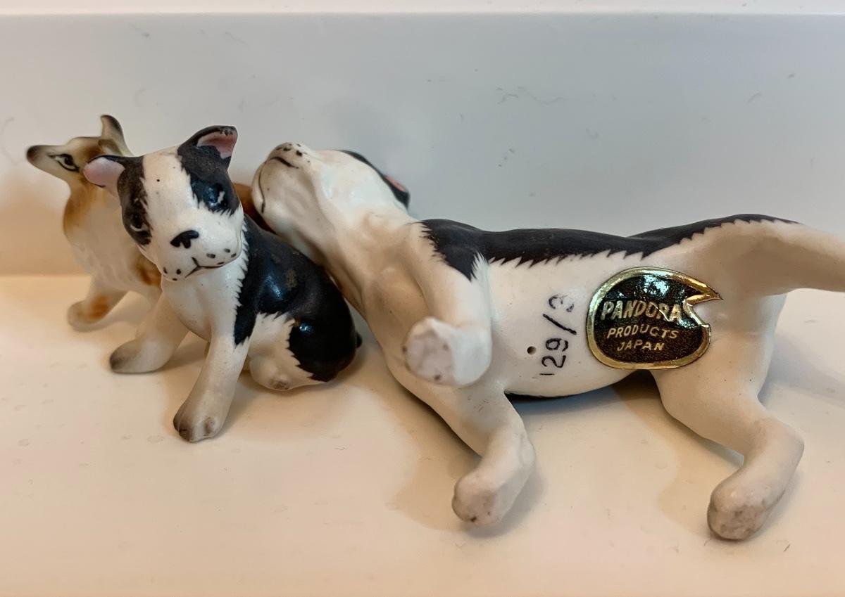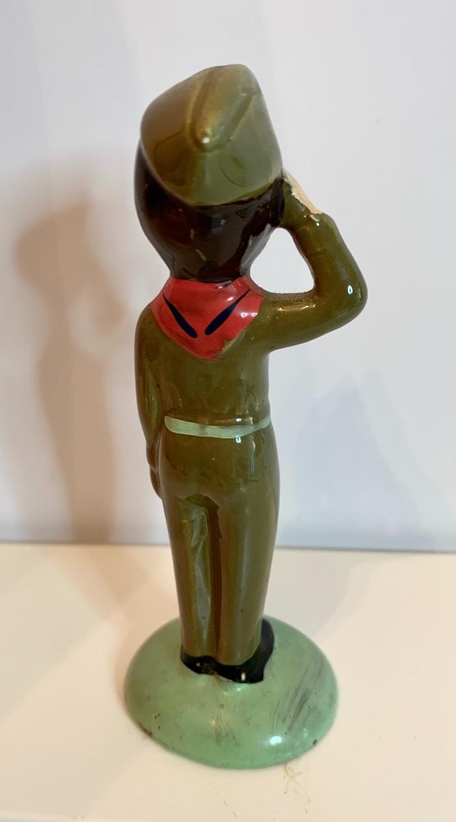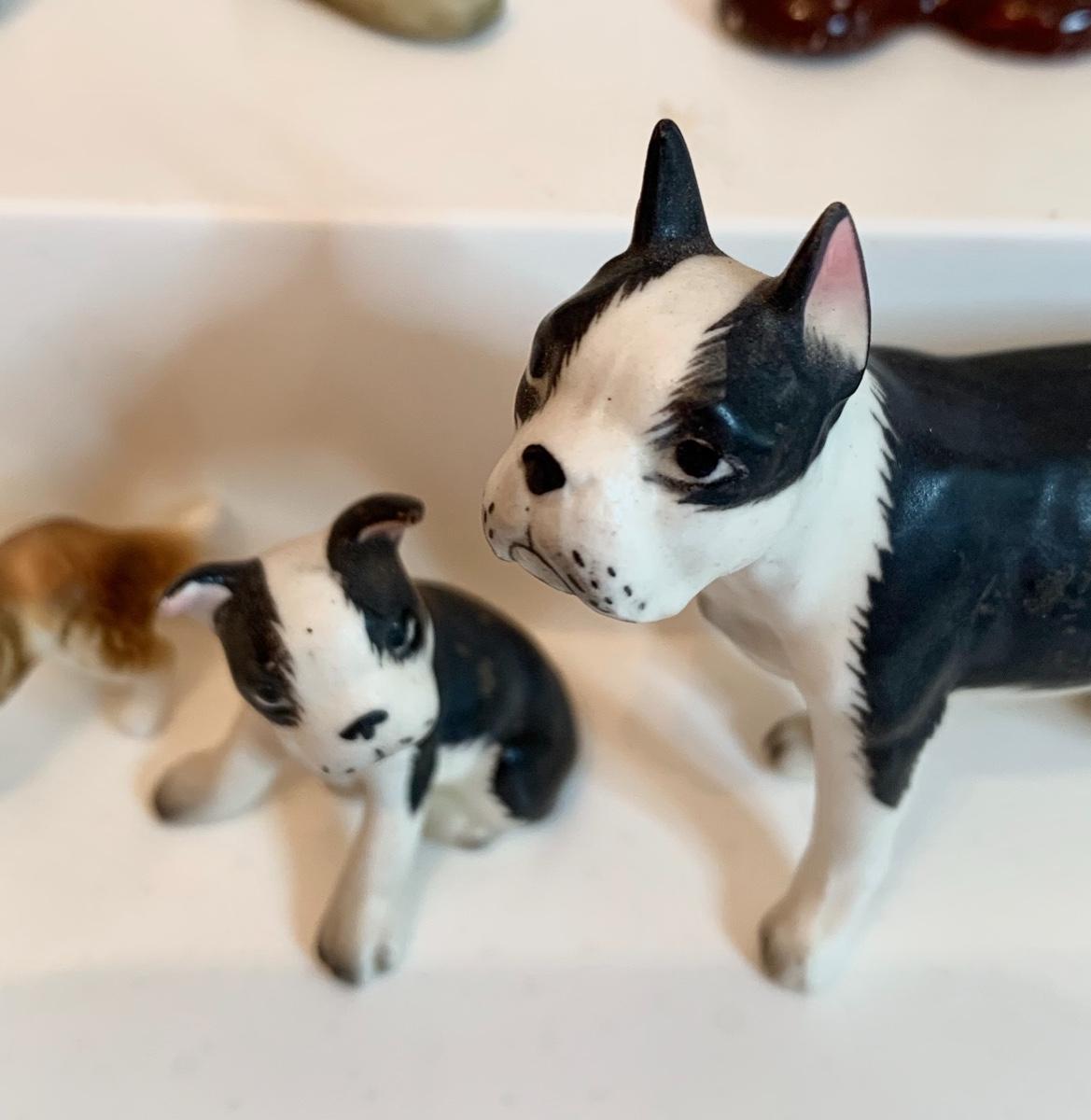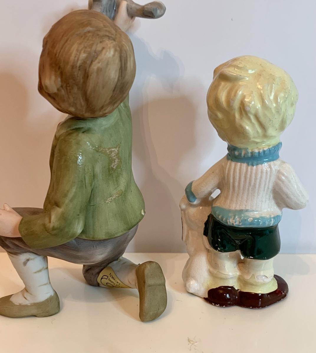 Beautiful Goebel boy scout trying to start a fire with his little four legged friend. Also included is a Goebel Scottie Dog, Boxer Miniatures, Royal Crown Child Life Figure and Enesco Figures.