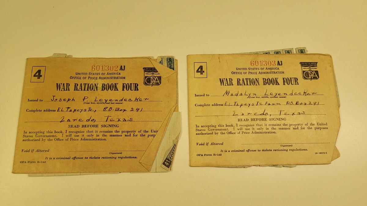Lot 13: (2) Vintage Ration Books in Leather Envelope