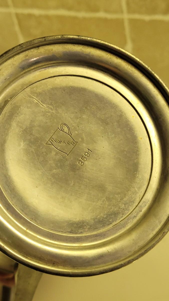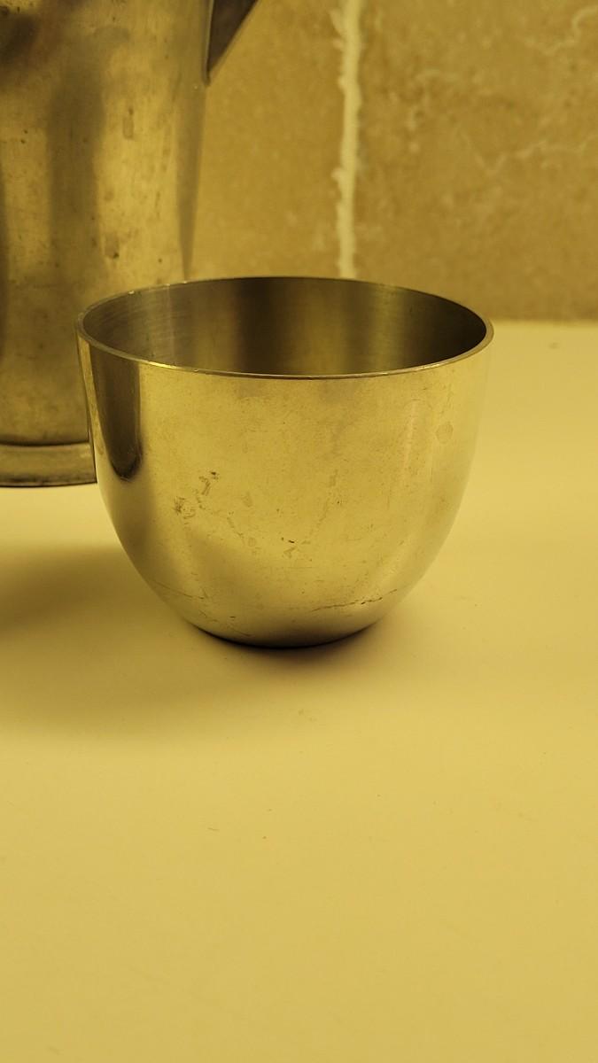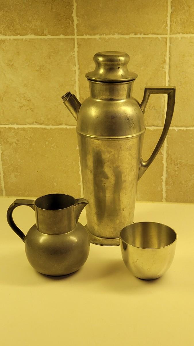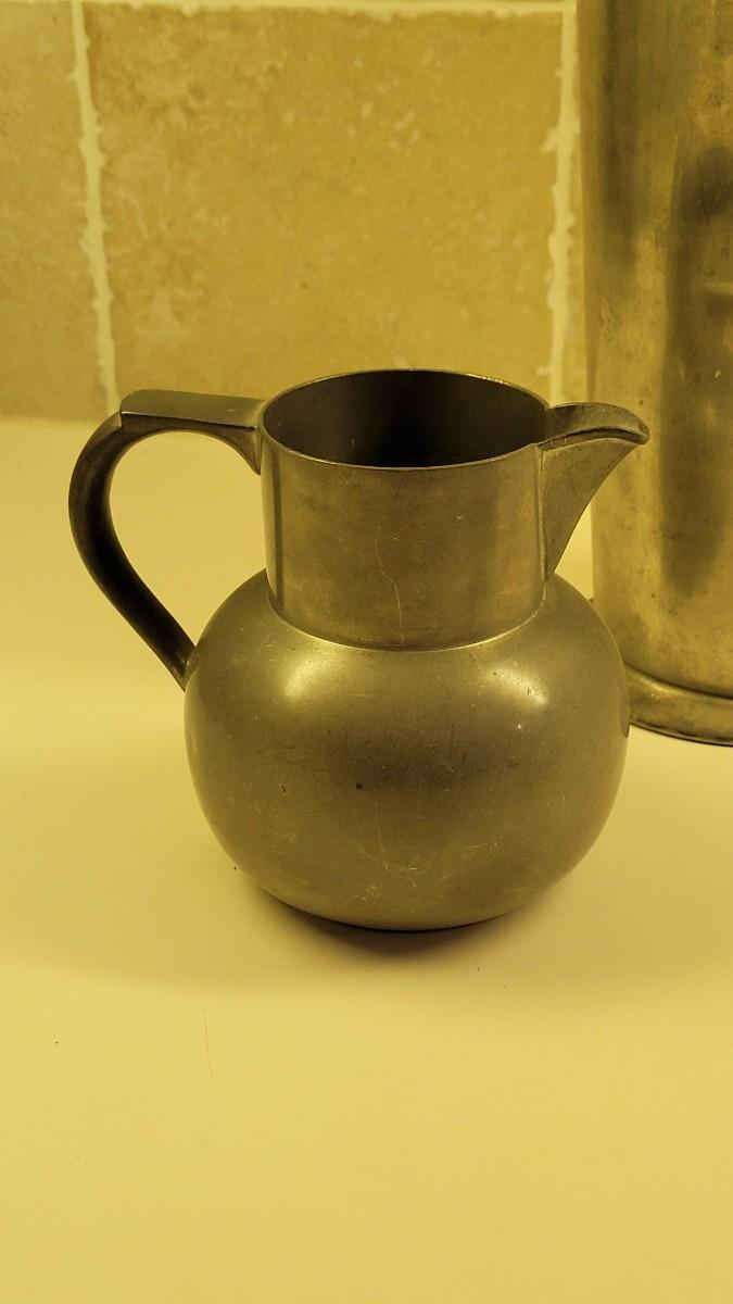 Lot 13: Vintage Pewter Coffee Pot, Creamer and Cup
