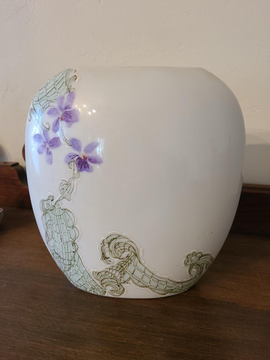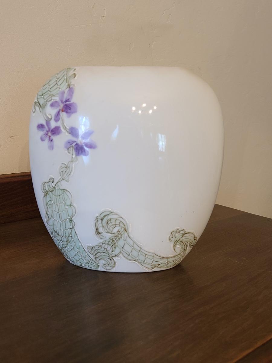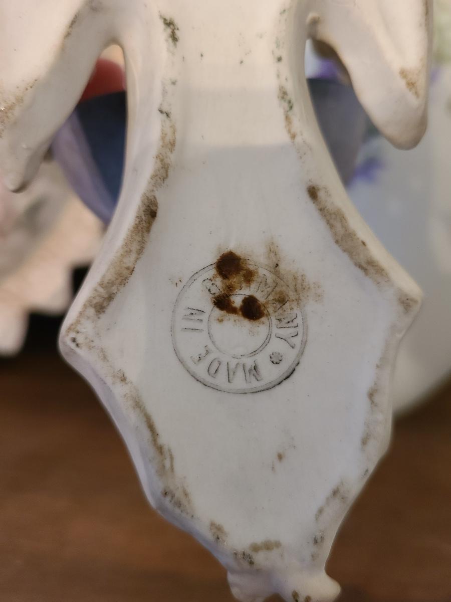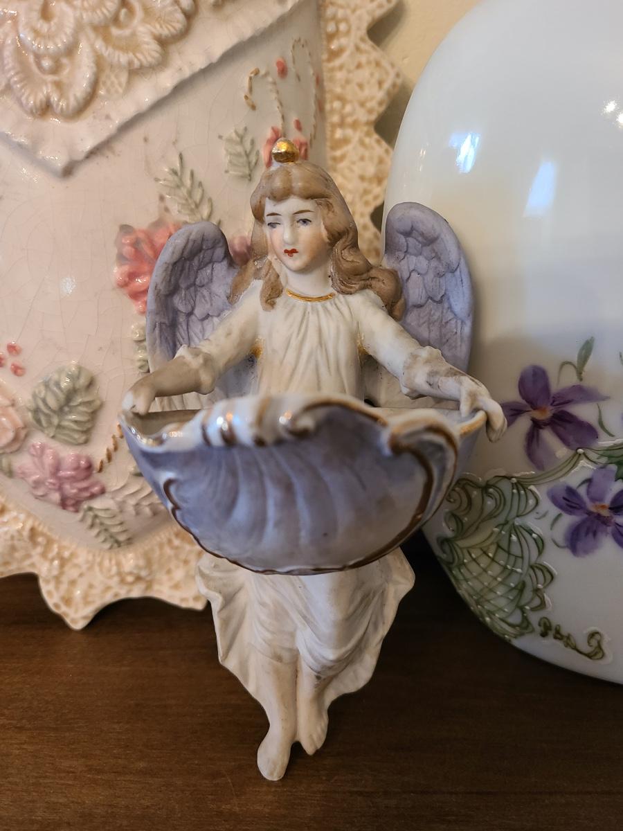 Lot 138: Pottery Floral Wall Pocket, Hand Painted Vase, and Antique Angel Wall Pocket