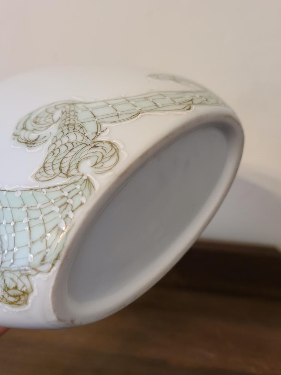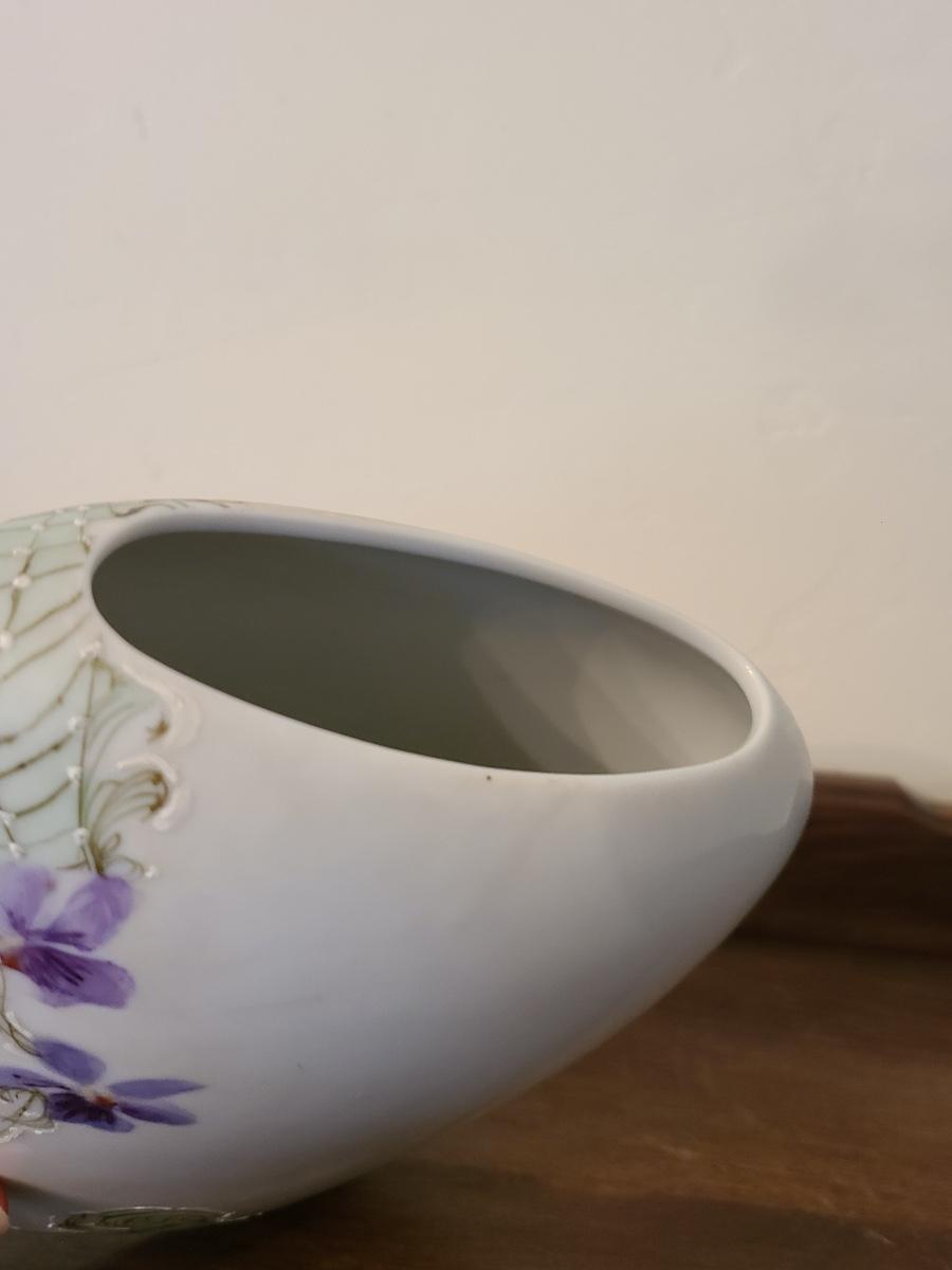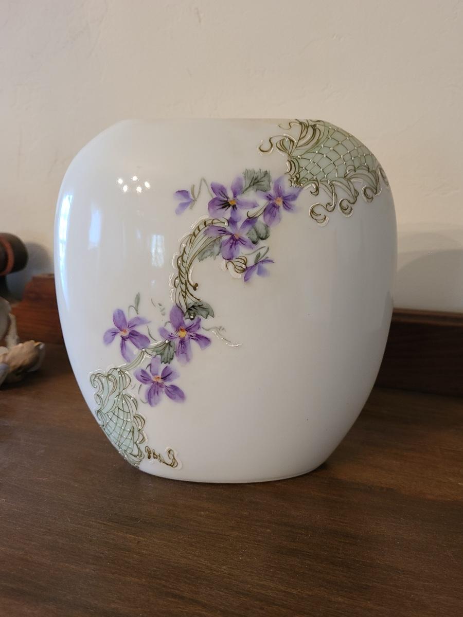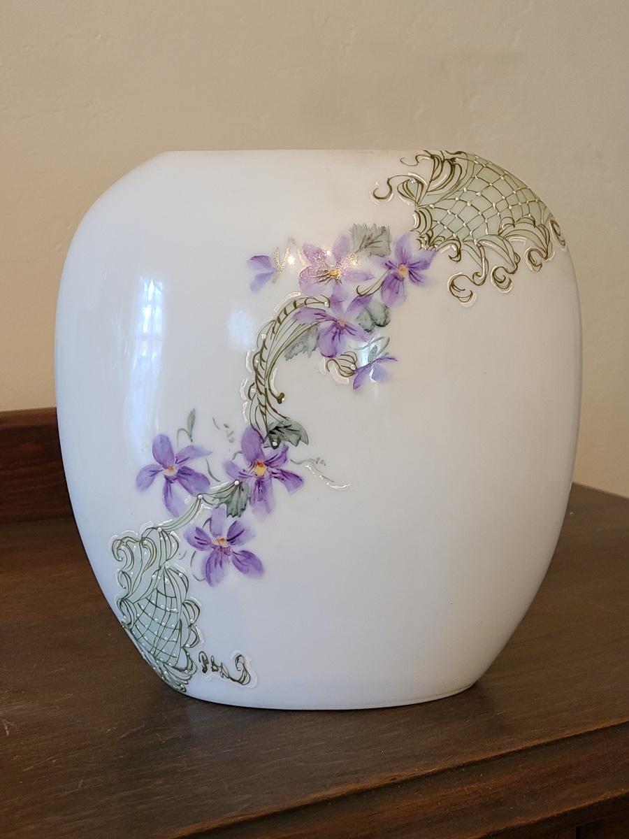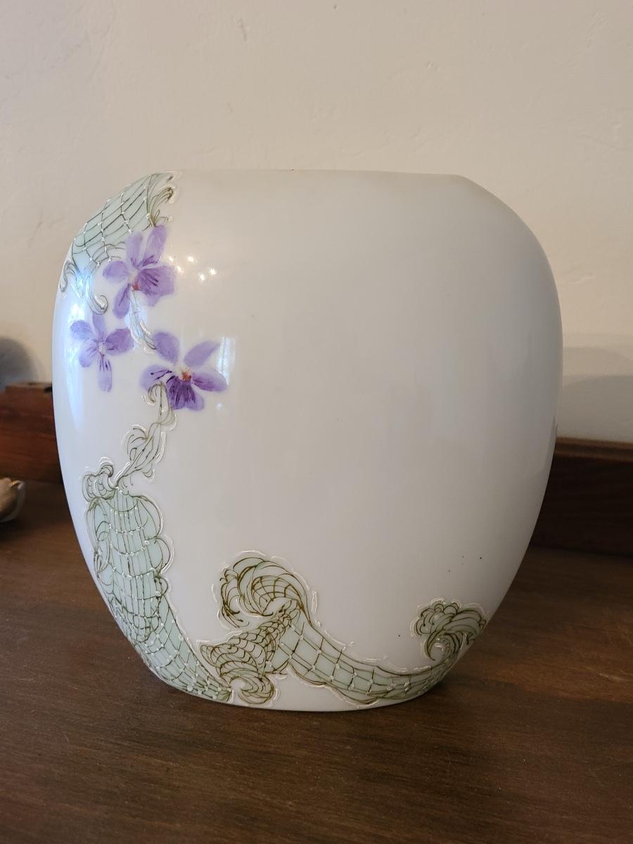Lot 138: Pottery Floral Wall Pocket, Hand Painted Vase, and Antique Angel Wall Pocket