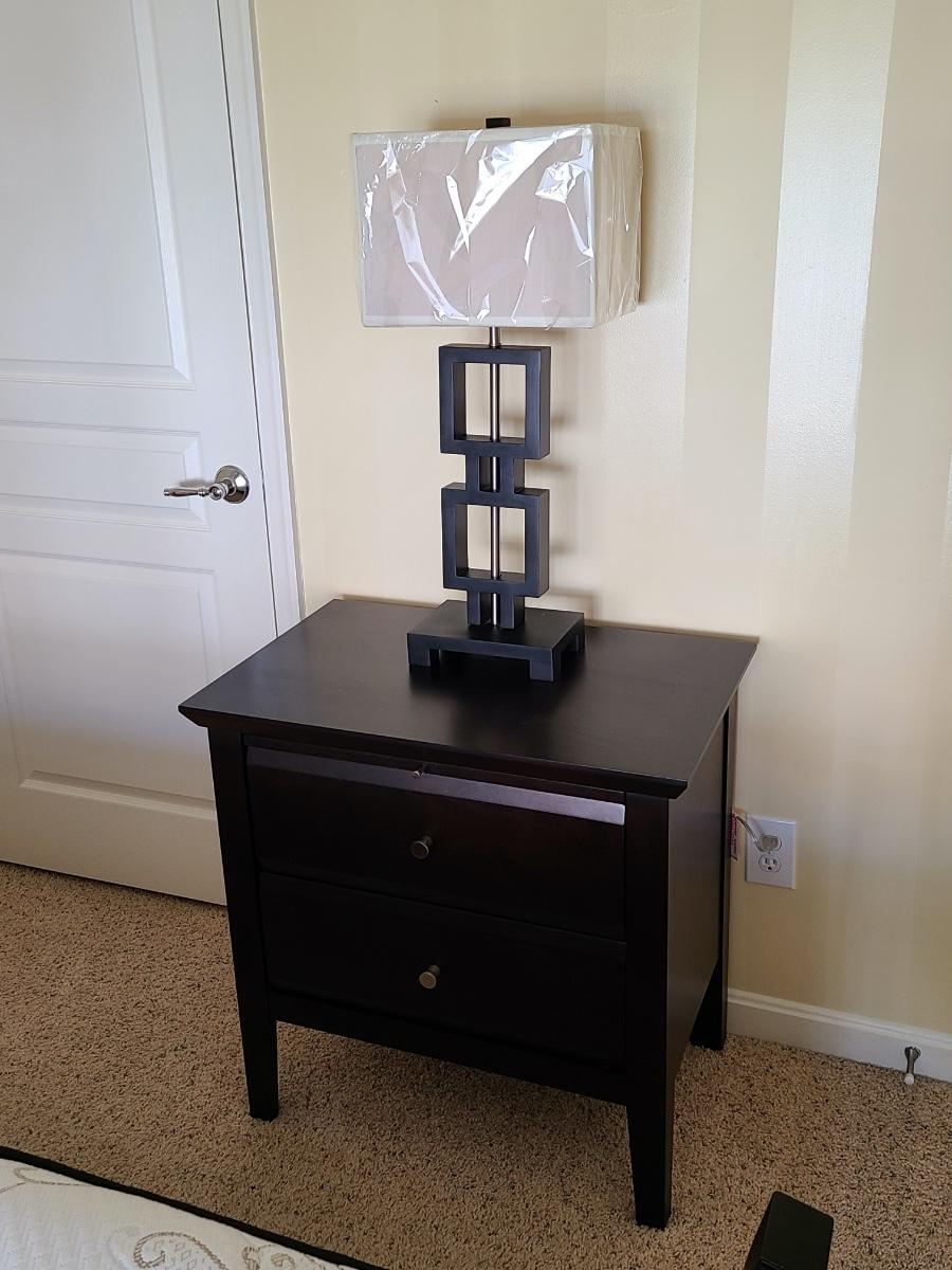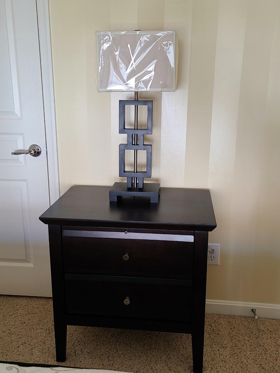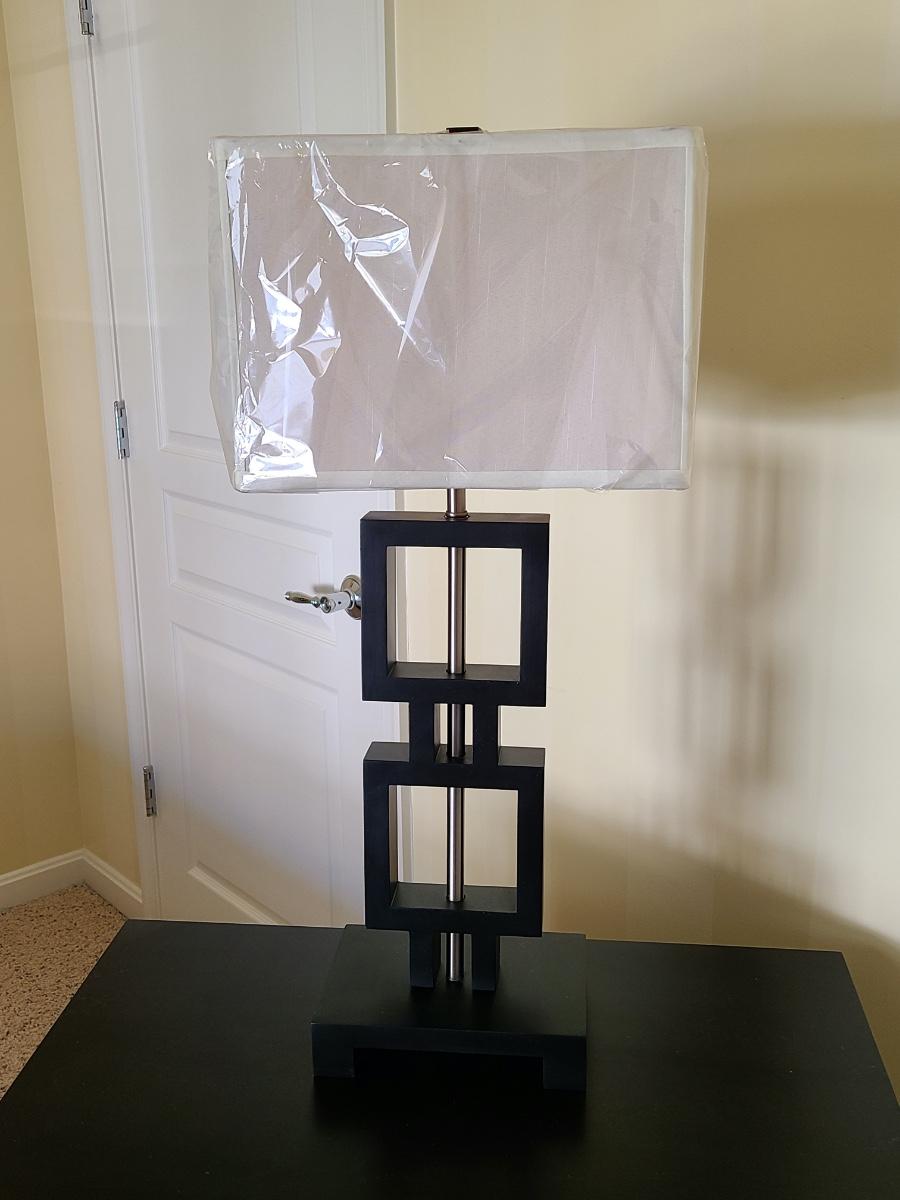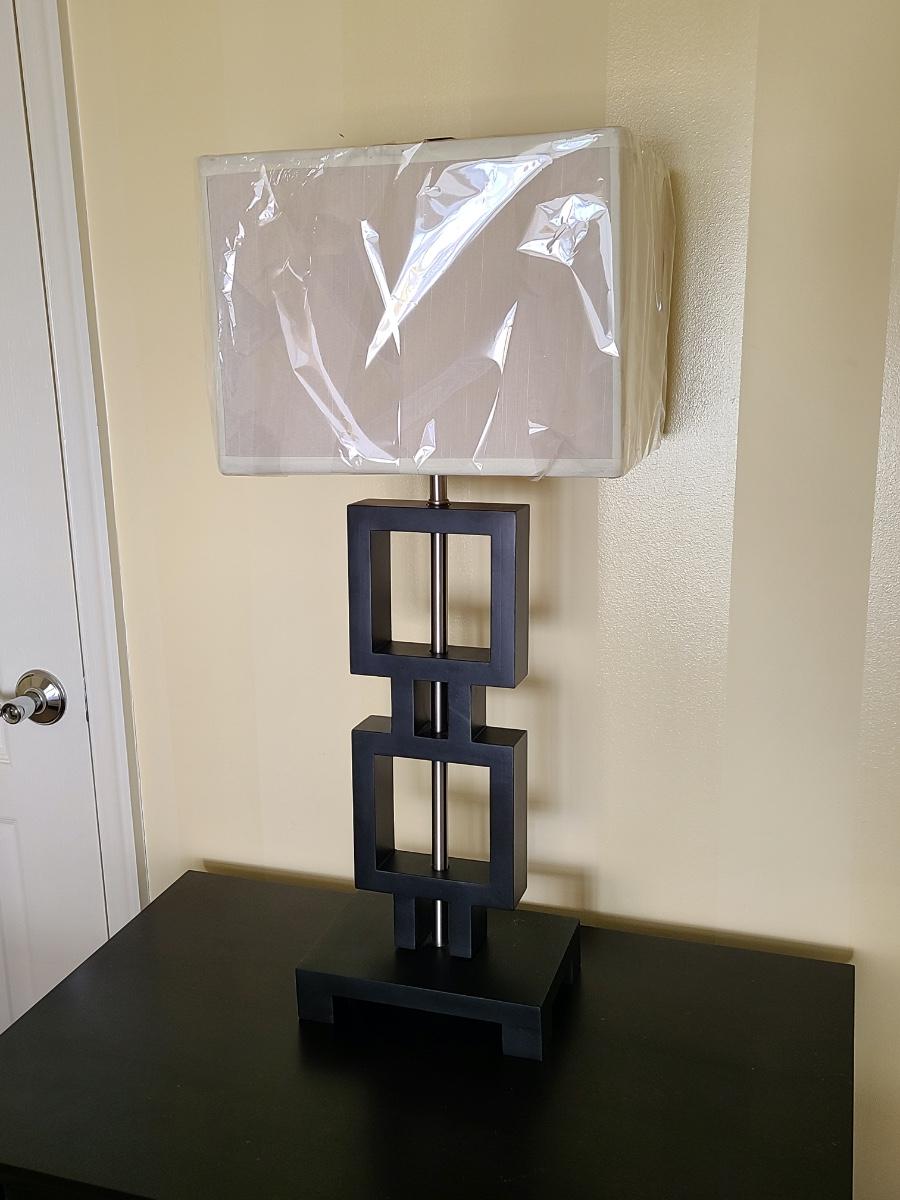 Still looks new. Comes with geometric lattice work lamp. The pictures show condition, measurements if taken, and what is included in the lot. Due to the large amount that we photograph and the time frame, we are not always able to take measurements. All items unless noted, are pre-owned and have been used. If you purchased furniture, you must bring help. We do not allow one person to carry large furniture out on their own. Bring help, tools and a truck for the safety of our client’s homes, and your personal safety. Any damages that result to the property including walls, and floors due to moving of the furniture will be charged to the buyer. Company policy. Thank you.