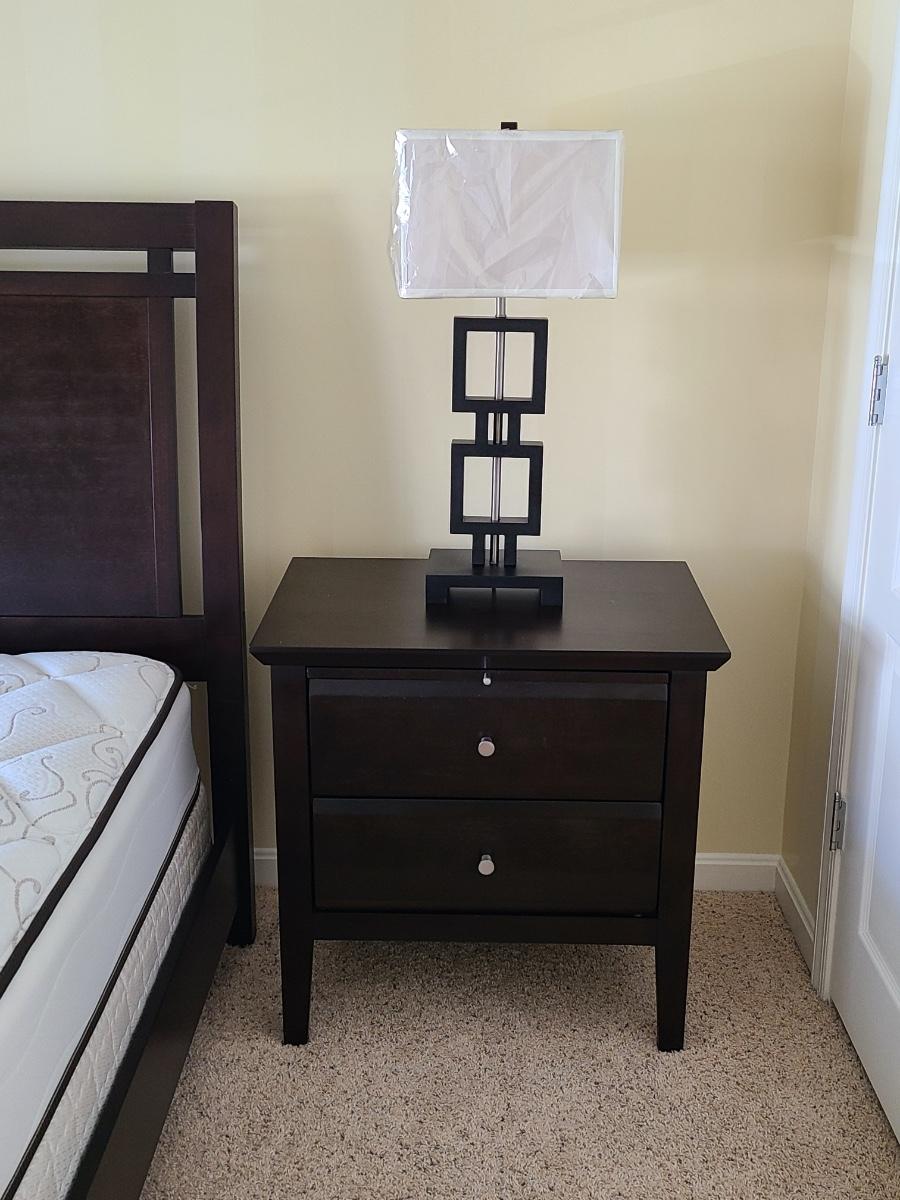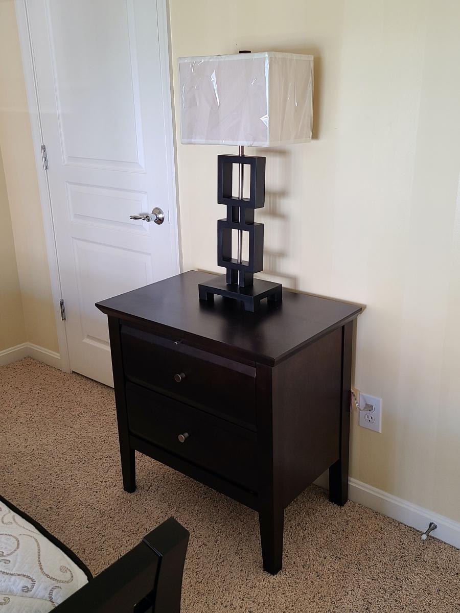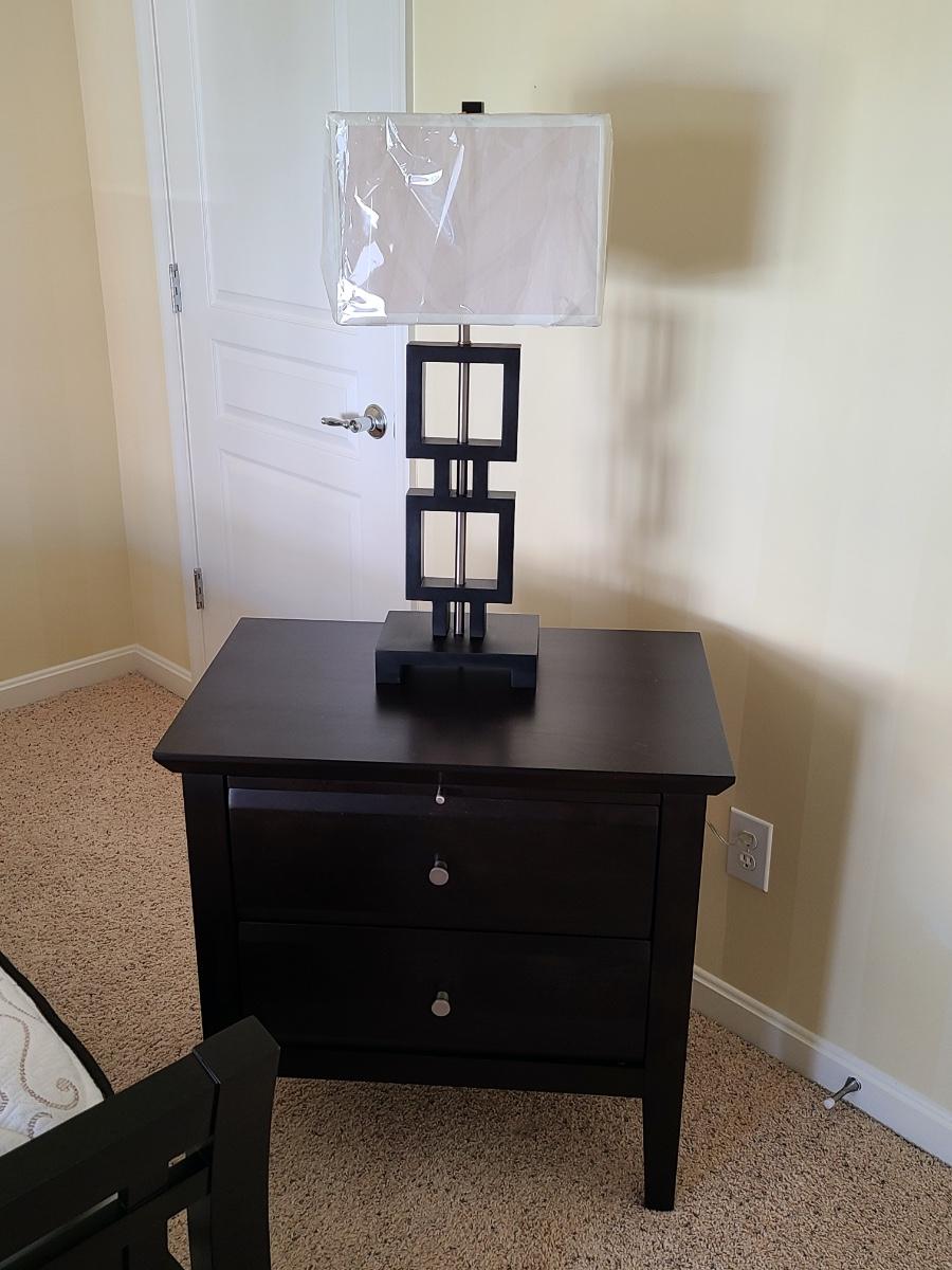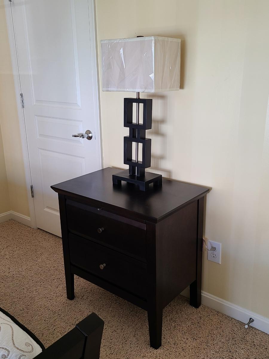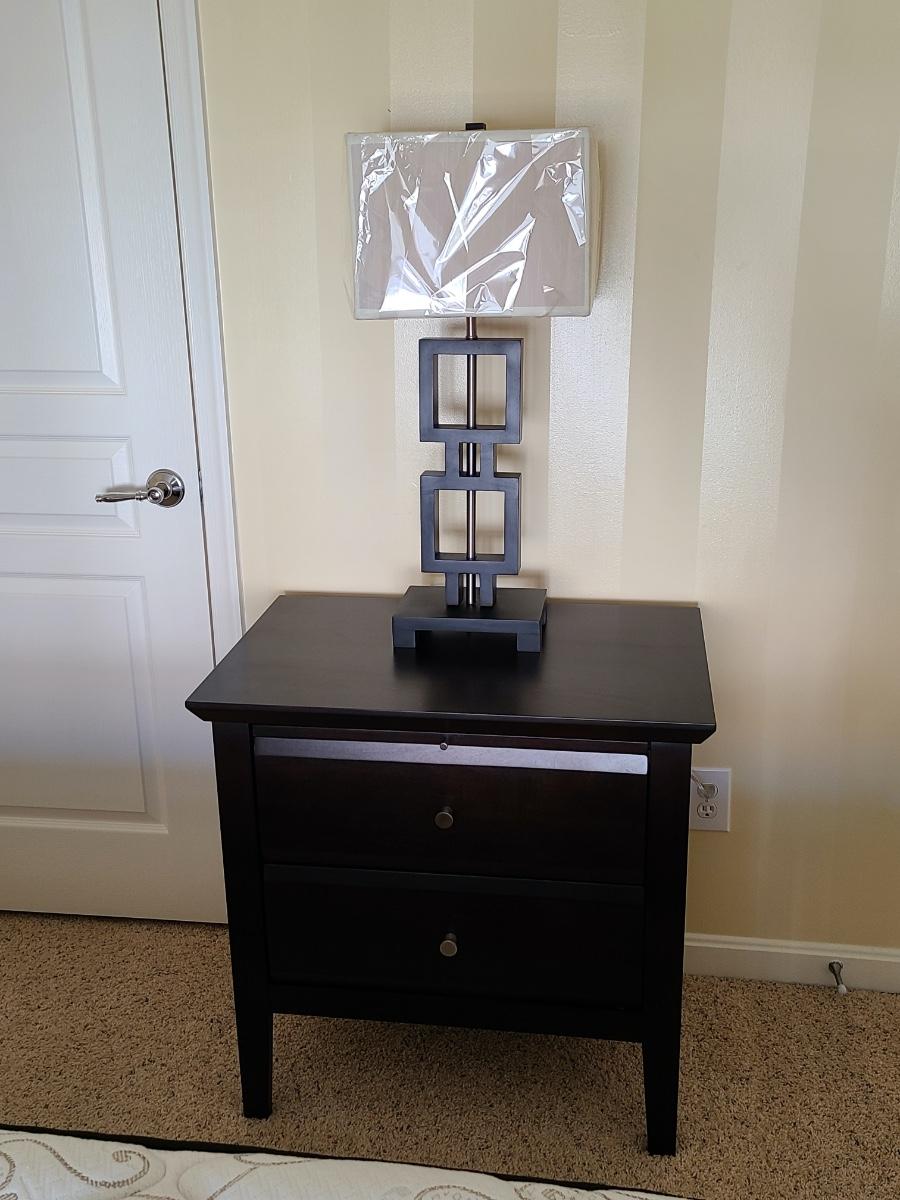 Still looks new. Comes with geometric lattice work lamp. The pictures show condition, measurements if taken, and what is included in the lot. Due to the large amount that we photograph and the time frame, we are not always able to take measurements. All items unless noted, are pre-owned and have been used. If you purchased furniture, you must bring help. We do not allow one person to carry large furniture out on their own. Bring help, tools and a truck for the safety of our client’s homes, and your personal safety. Any damages that result to the property including walls, and floors due to moving of the furniture will be charged to the buyer. Company policy. Thank you.