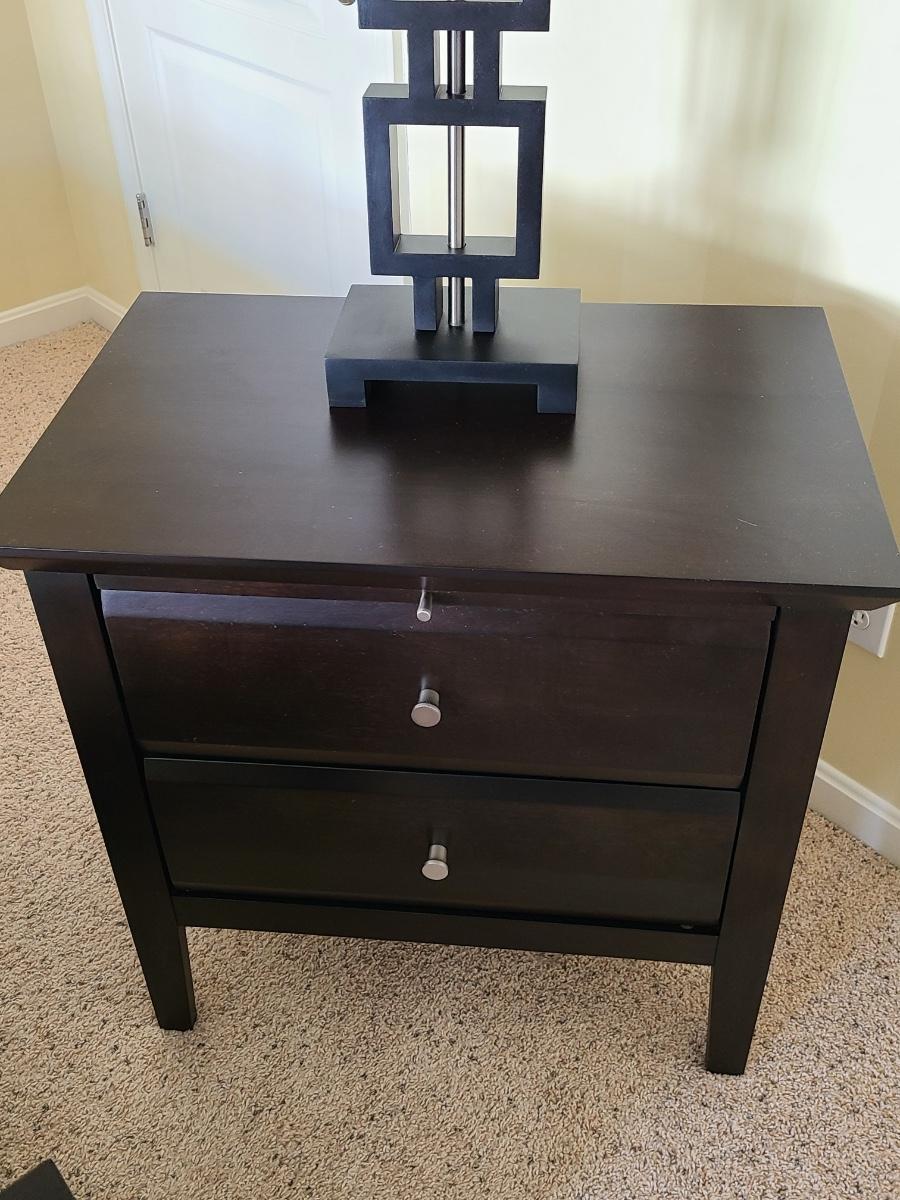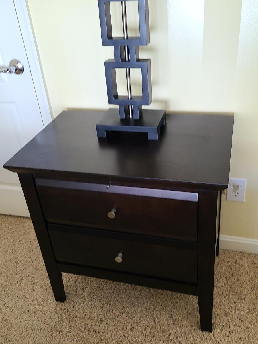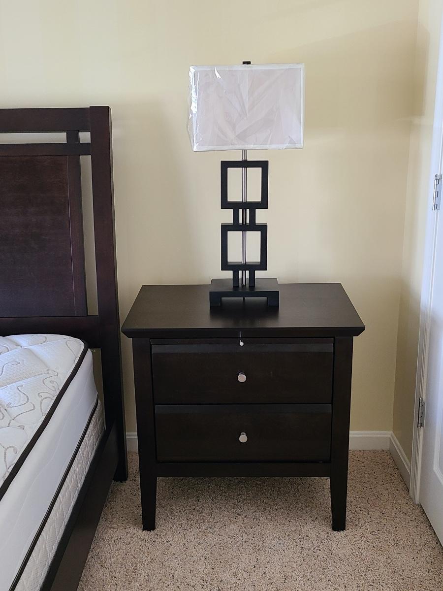 Lot 13: Raymour and Flanigan Newport Nightstand and Lamp