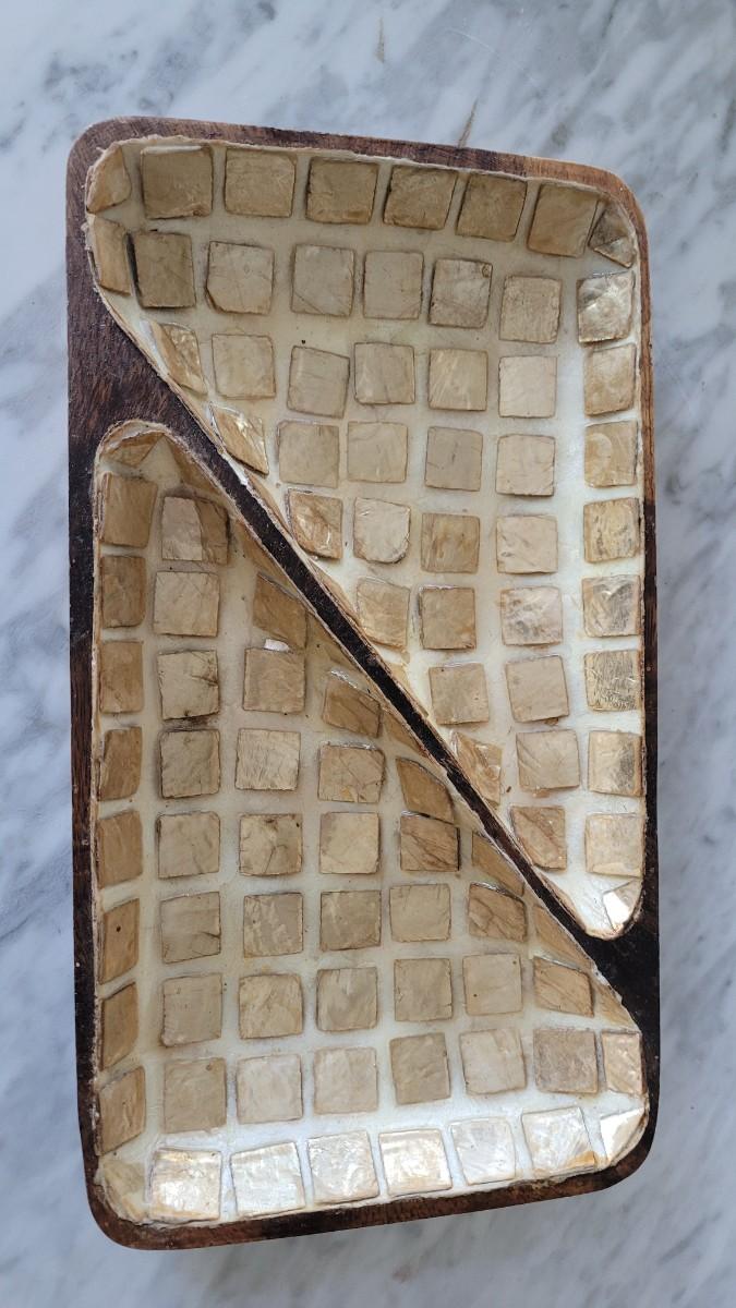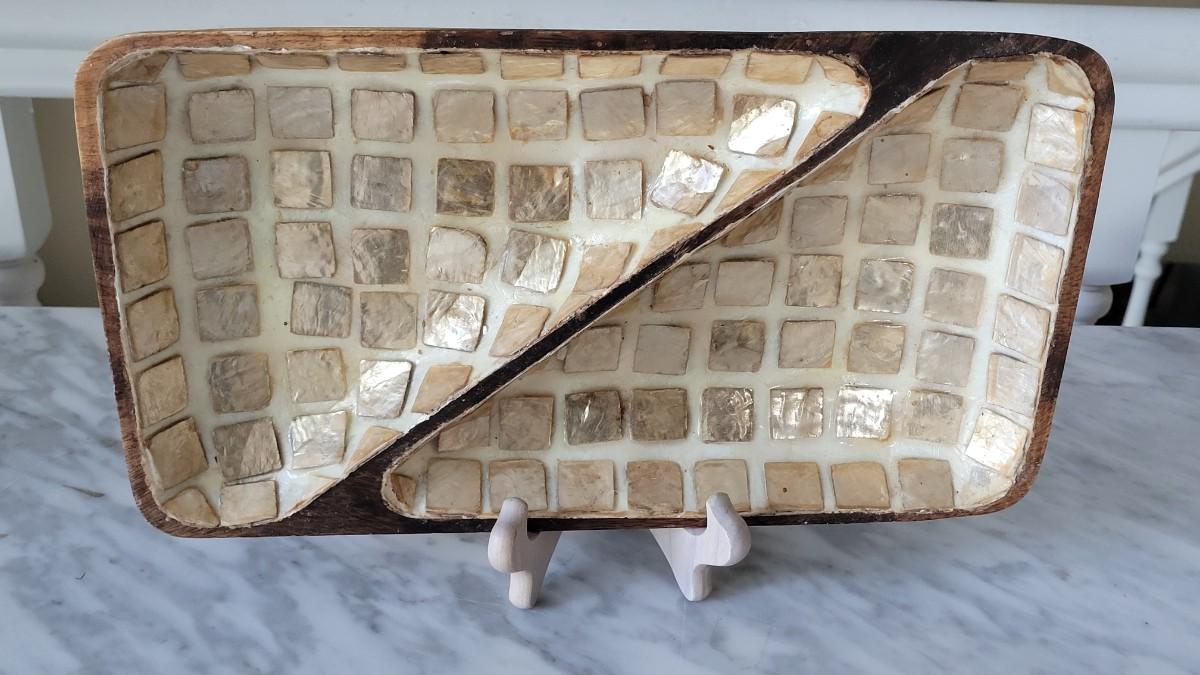 Lot 13: Vintage Abalone Shell and Wood Tray
