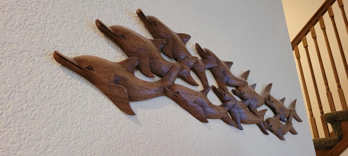 Lot 13: Vintage Wooden Dolphin Wall Hanging Sculpture
