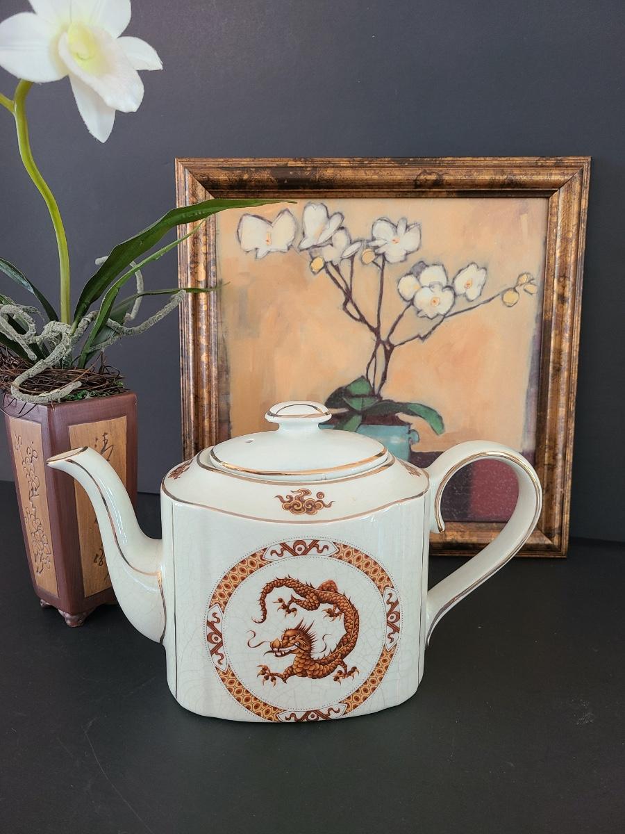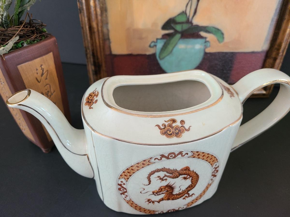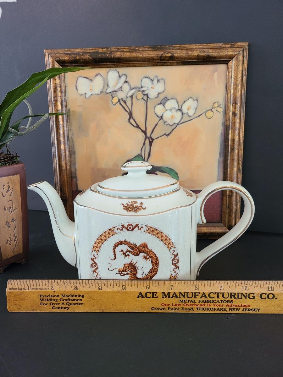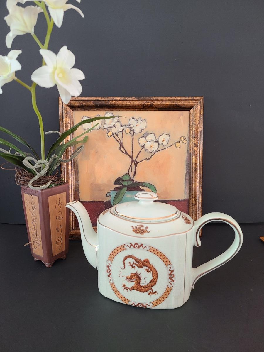 Lovely Arthur Wood teapot with dragon on front and back. This comes with modern home artwork and small flower vase. Teapot is perfect for function or decor! Please see all pictures as they are the best representation of the items. The pictures show condition, measurements if taken, and what is included in the lot. Due to the large amount that we photograph and the time frame, we are not always able to take measurements. All items unless noted, are pre-owned and have been used. If you purchased furniture, you must bring help. We do not allow one person to carry large furniture out on their own. Bring help, tools and a truck for the safety of our client’s homes, and your personal safety. Any damages that result to the property including walls, and floors due to moving of the furniture will be charged to the buyer. Company policy. Thank you.