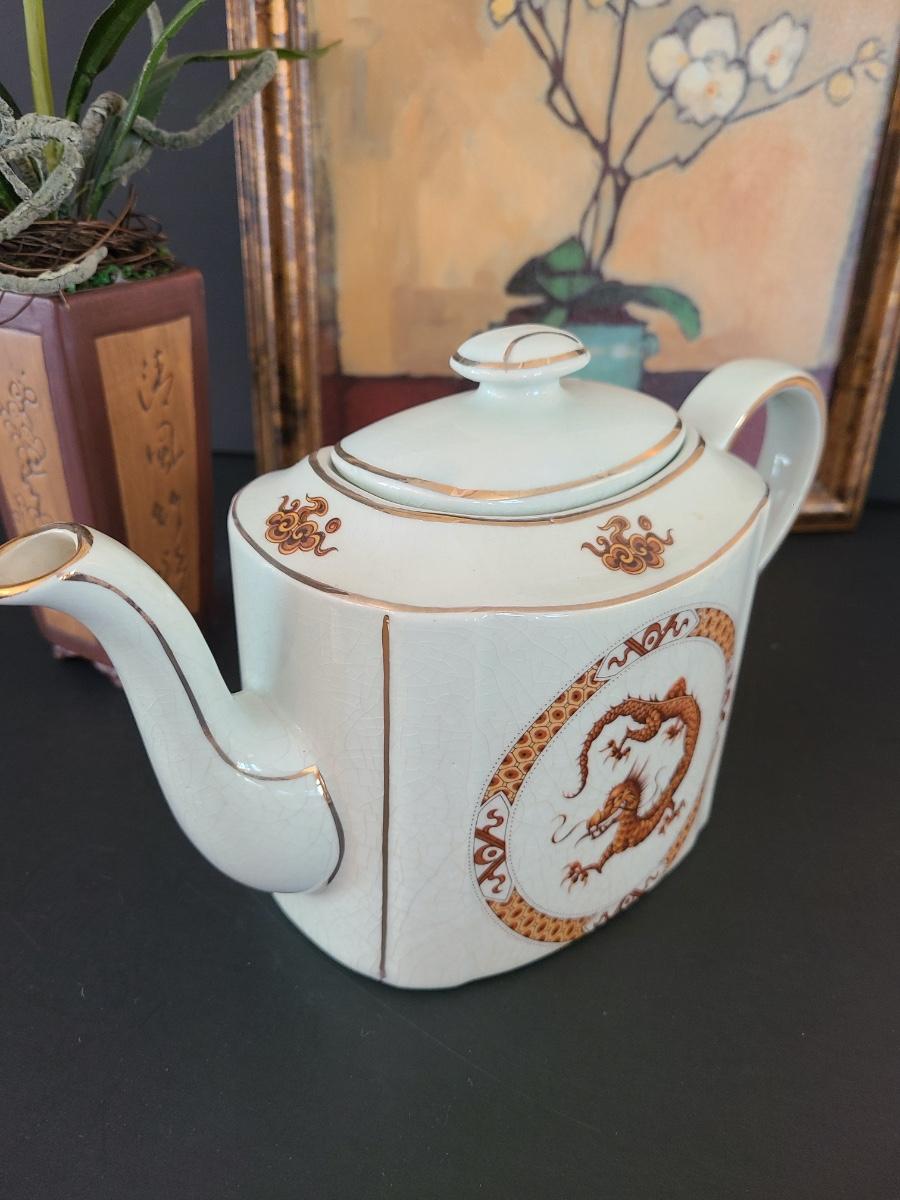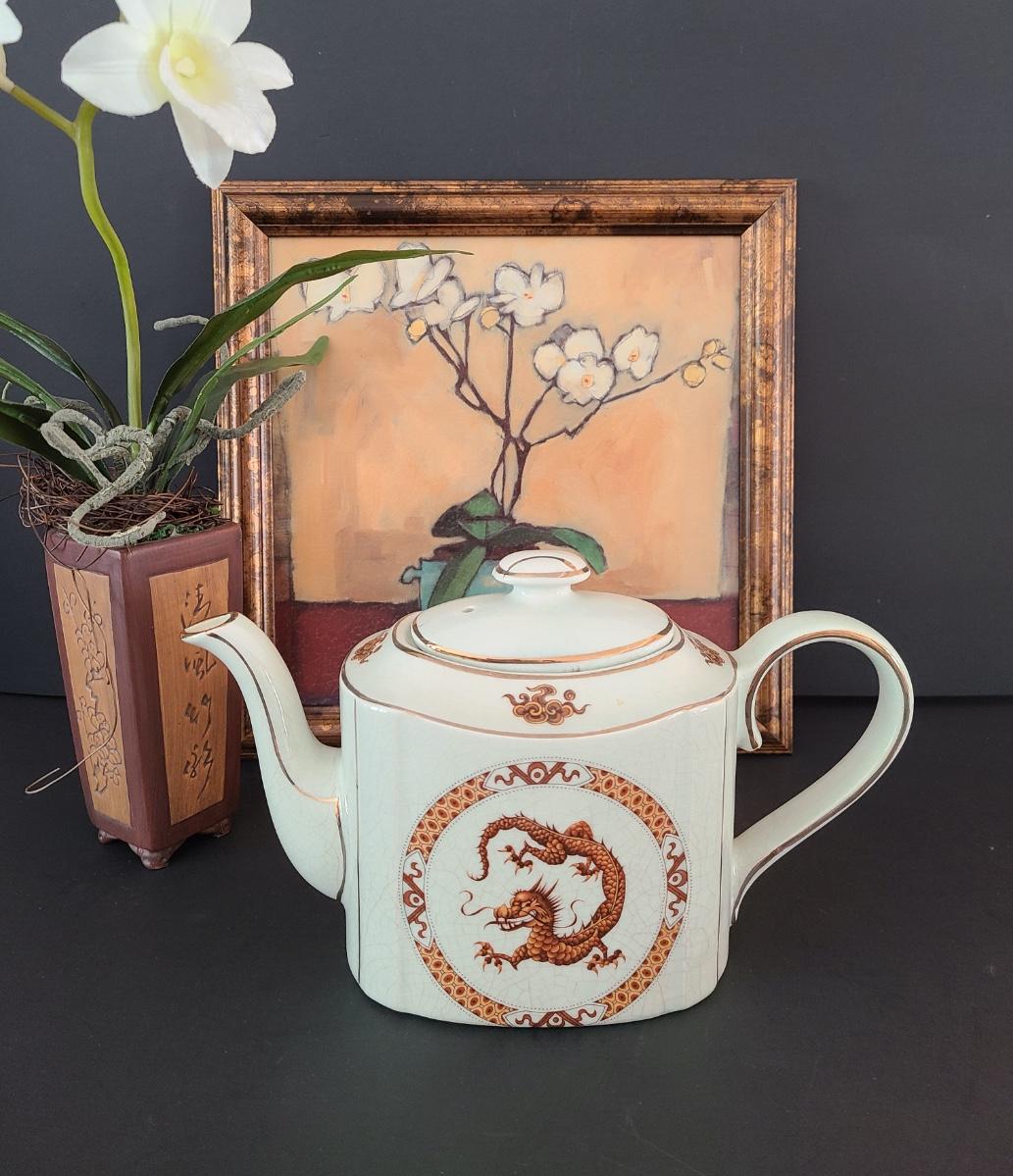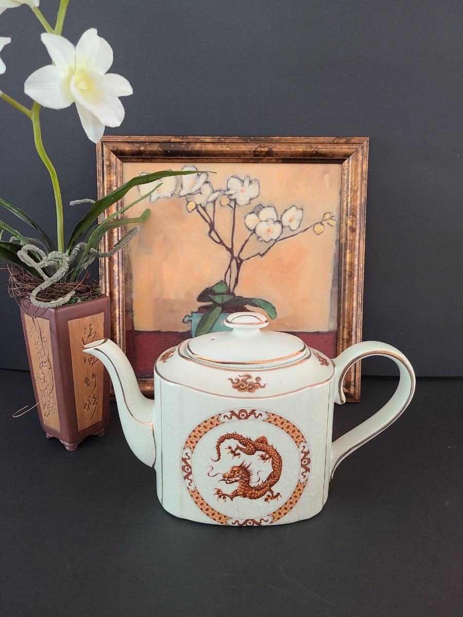 Lovely Arthur Wood teapot with dragon on front and back. This comes with modern home artwork and small flower vase. Teapot is perfect for function or decor! Please see all pictures as they are the best representation of the items. The pictures show condition, measurements if taken, and what is included in the lot. Due to the large amount that we photograph and the time frame, we are not always able to take measurements. All items unless noted, are pre-owned and have been used. If you purchased furniture, you must bring help. We do not allow one person to carry large furniture out on their own. Bring help, tools and a truck for the safety of our client’s homes, and your personal safety. Any damages that result to the property including walls, and floors due to moving of the furniture will be charged to the buyer. Company policy. Thank you.