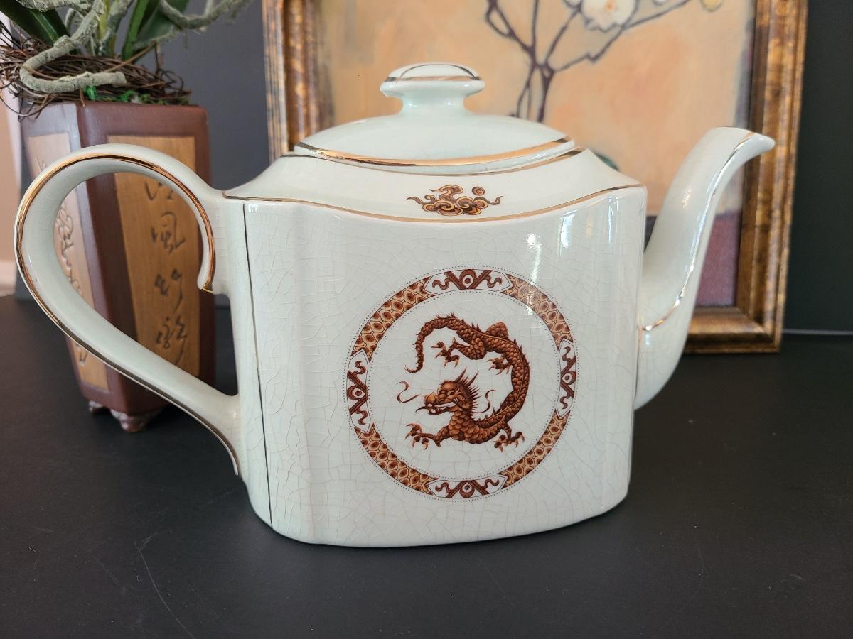 Lot 13: Arthur Wood (England) Celadon Dragon Teapot and More