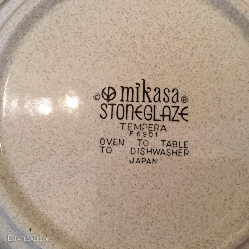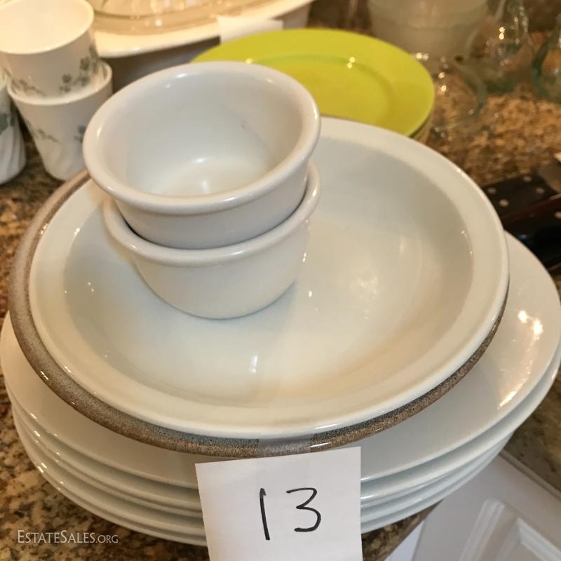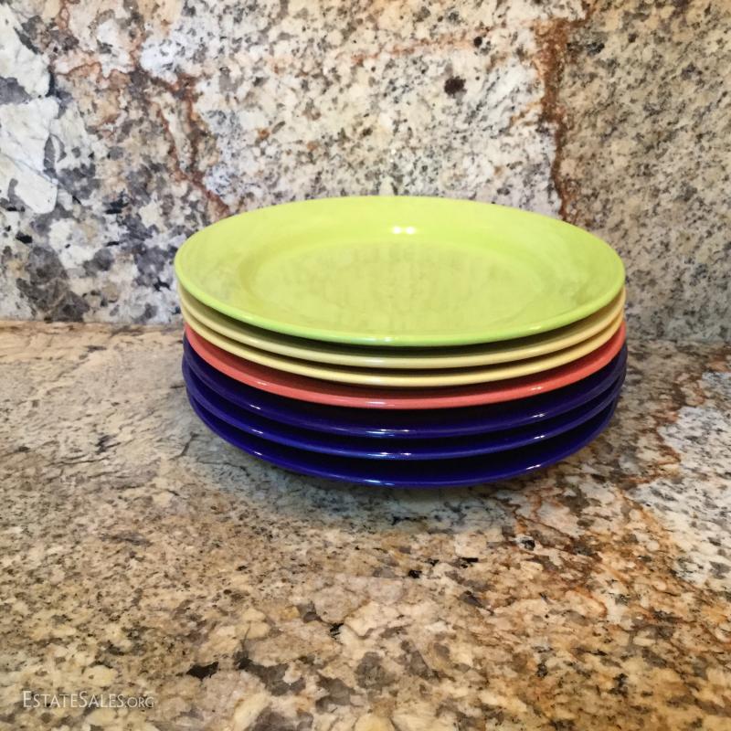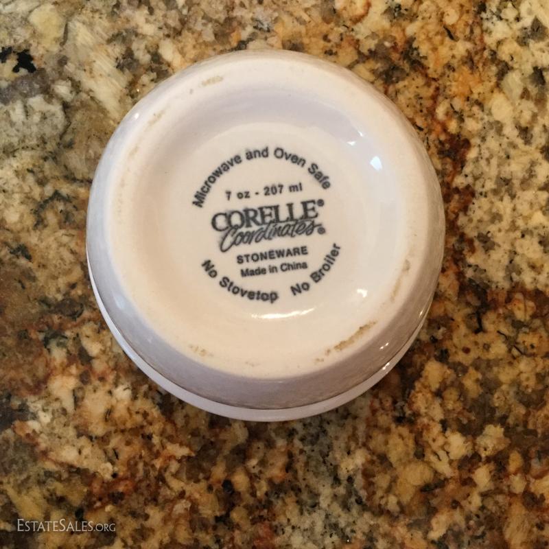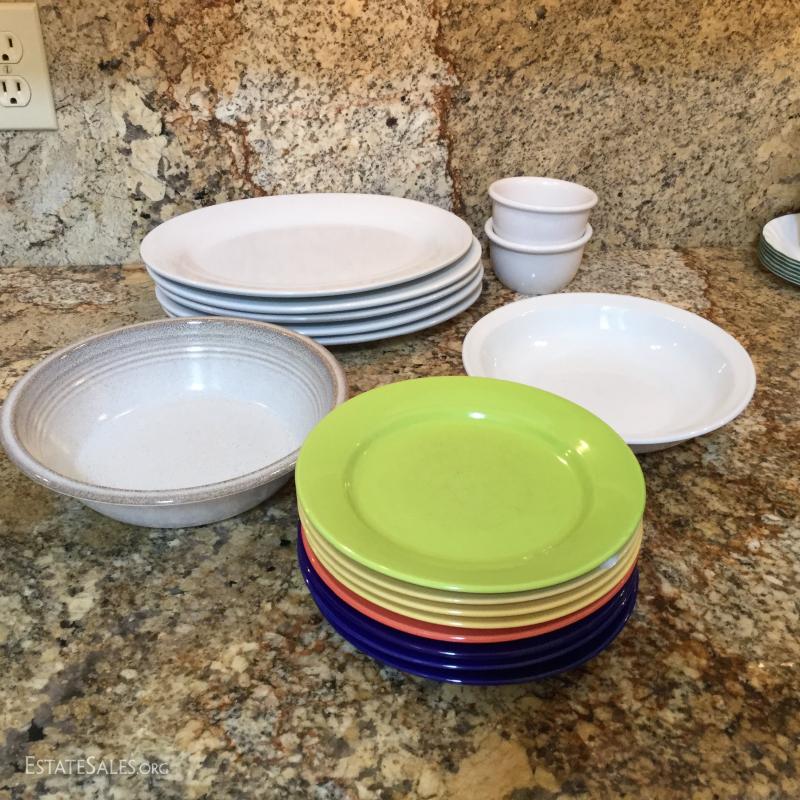 Assorted dishes by Corelle, Mikasa Stoneware and Cordon Bleu. Mostly white dishes and several bright colored plates. See photos. 17 pieces in total.
