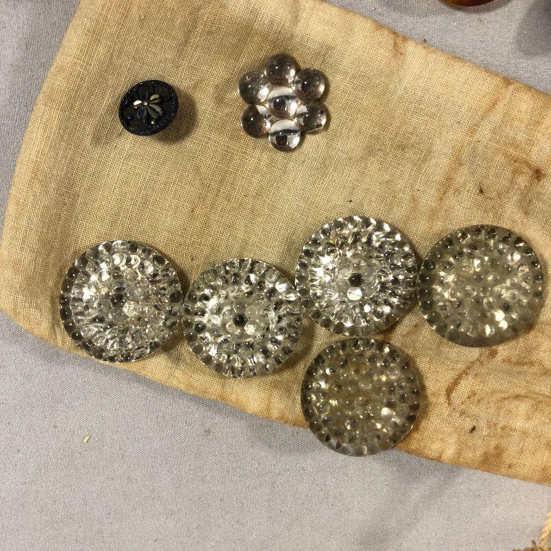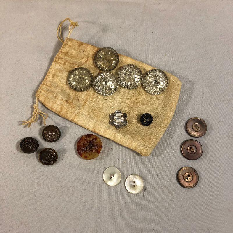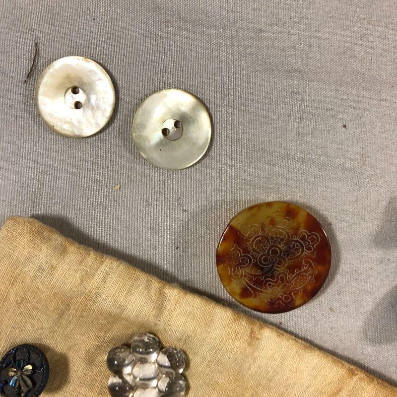 The buttons are made of a variety of material - plastic, metal, and mother of pearl.