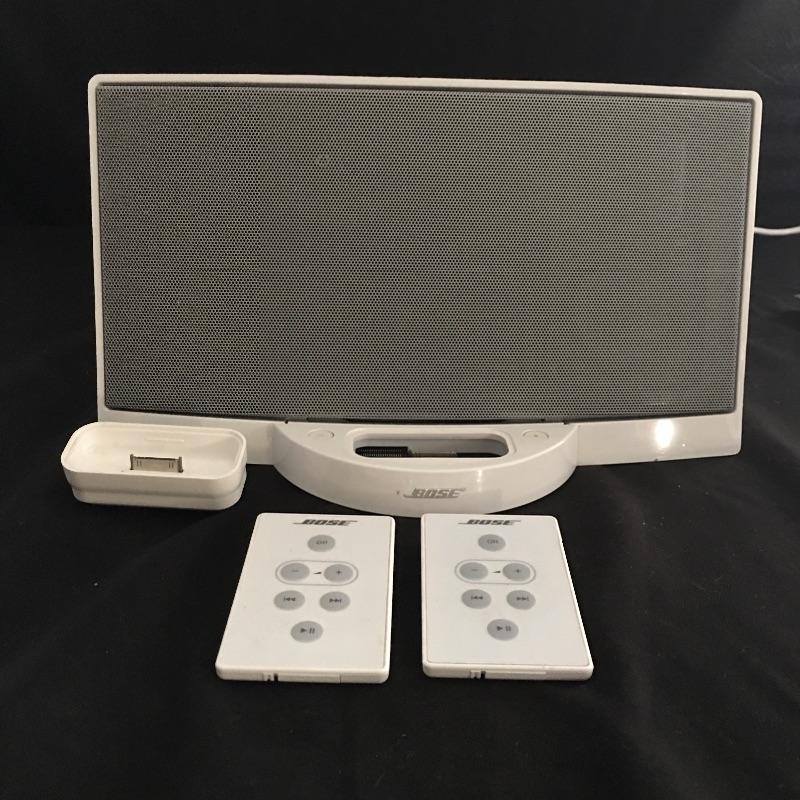 Bose SoundDock digital music system for a 30 pin iPhone or iPod. Comes with power adapter and remotes. Worked great when tested, remote was not tested as batteries are dead. Get your groove on with this sweet sounding Bose SoundDock.