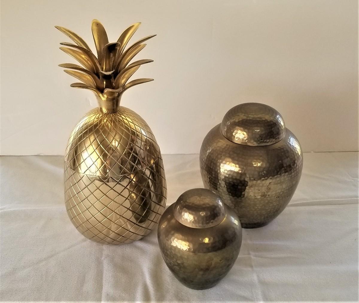 Lot #13 Brass Decorative Lot - Pineapple, 2 Ginger Jars/Urns