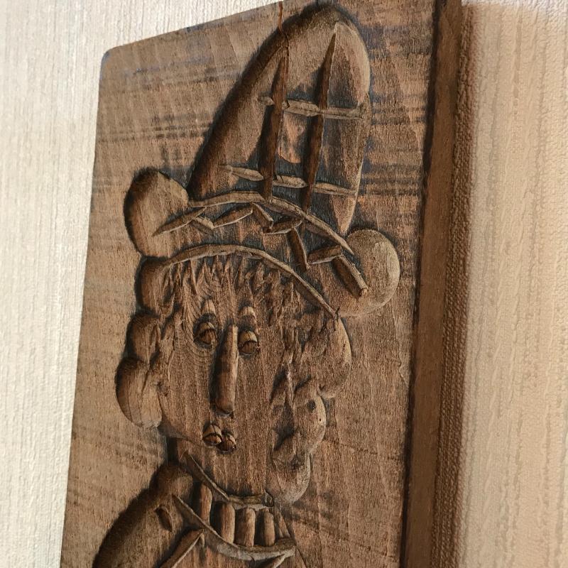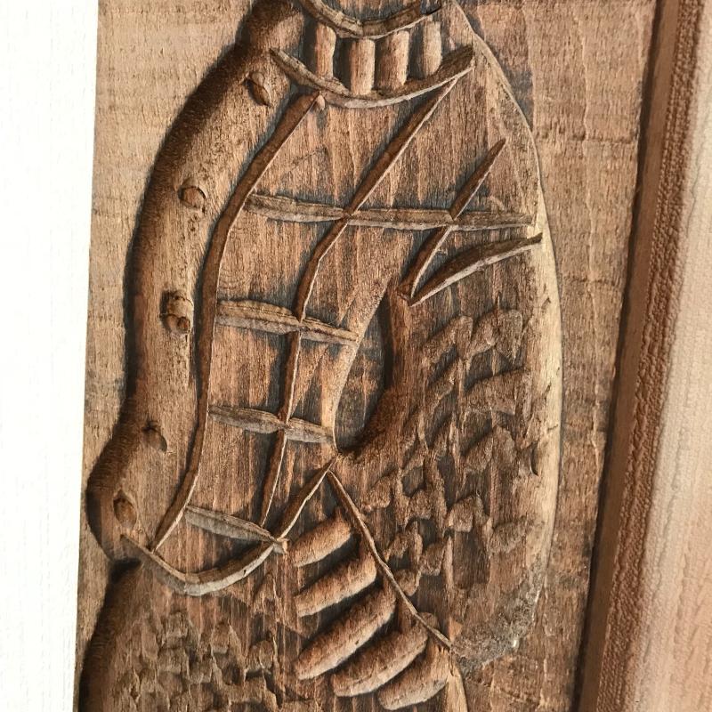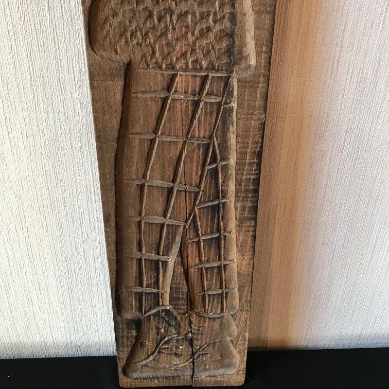Interesting carved wood art with black accents measures 35” x 7”. Wood has a slight split at the bottom, but at the moment does not affect integrity of entire piece. Shipping available.