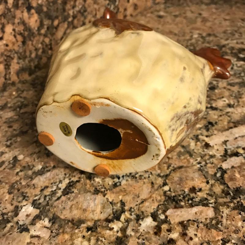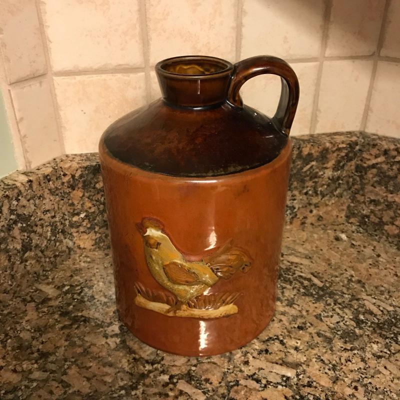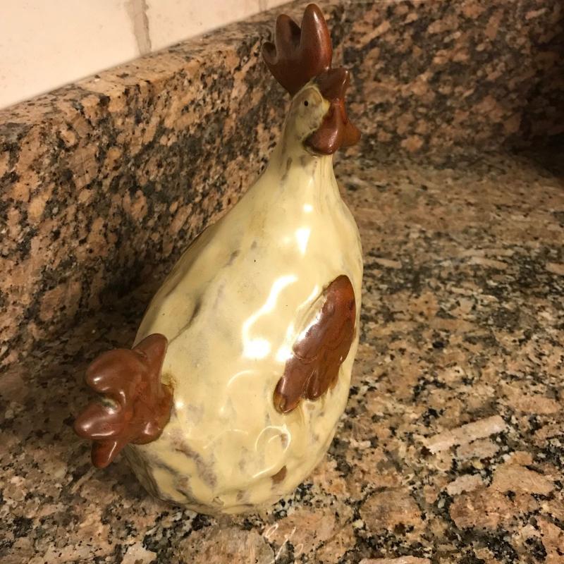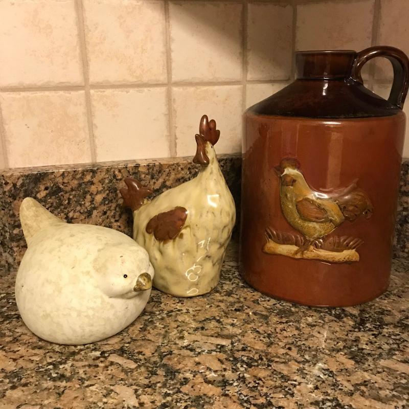 Set of three bird inspired ceramics for some fun decor. Includes a rooster crock, a chicken and a plump bird. Crock measures 7”d x 10.5”h Shipping available.