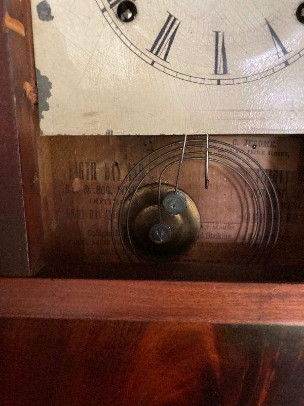 15" tall. Sgnd movement. Original hands, tablets, dial.Label complete but dark. Movement rebuilt 6-2020