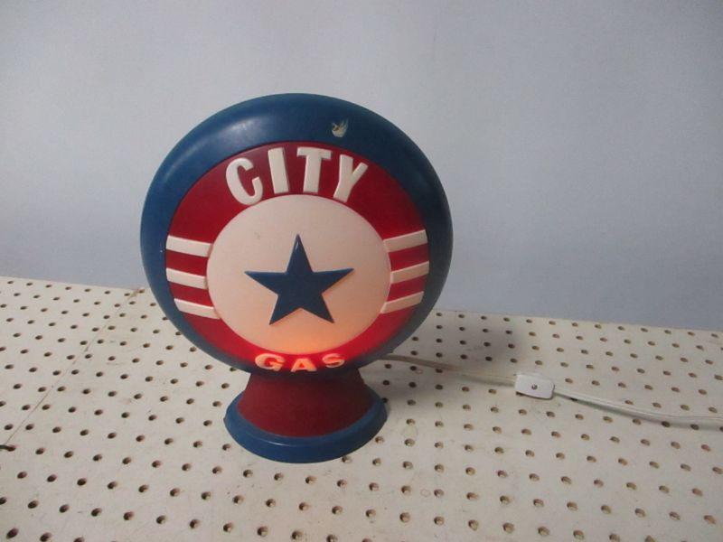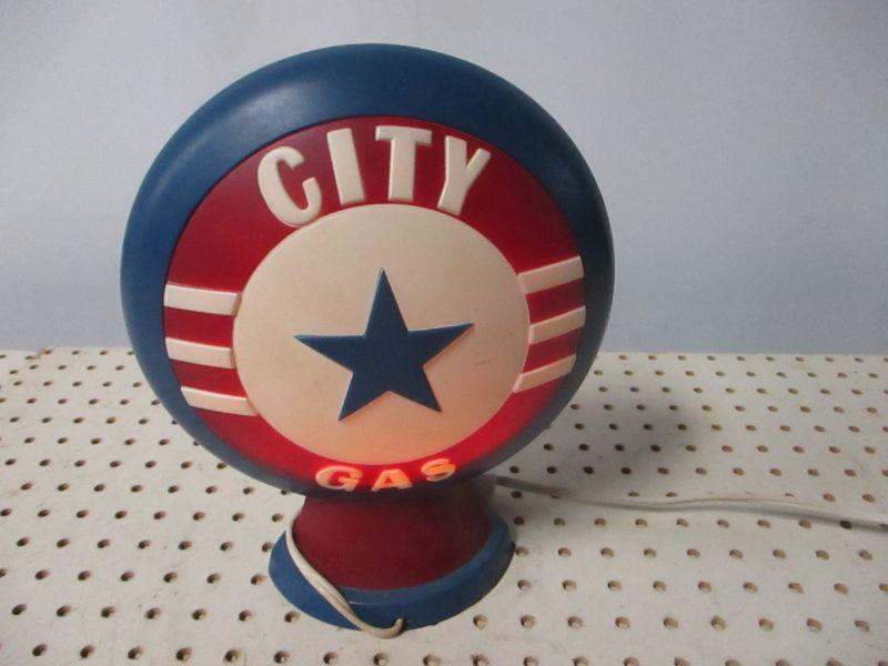 Tabletop "City Gas" Retro Gas Station Lighted Sign Red White Blue. Measures 11.5"H x 9.5"W x 5"D.