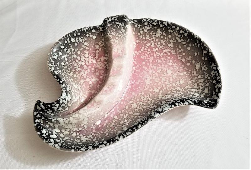 Early 1960's pink/gray ceramic ashtray/bowl in a free-form design. Good condition. Measures 10" x 7".