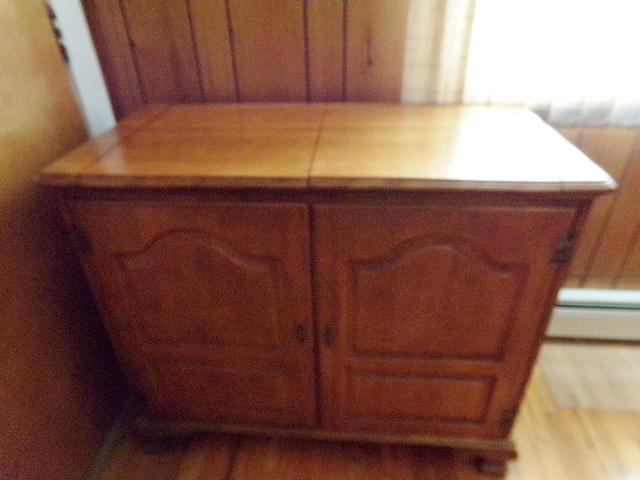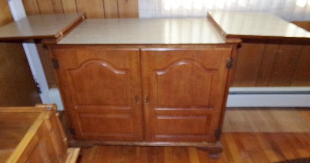 DRY BAR MEASURES 40"X20"X33" WHEN THE 2 HINGED TOP PIECES ARE OPENED YOU HAVE 66"